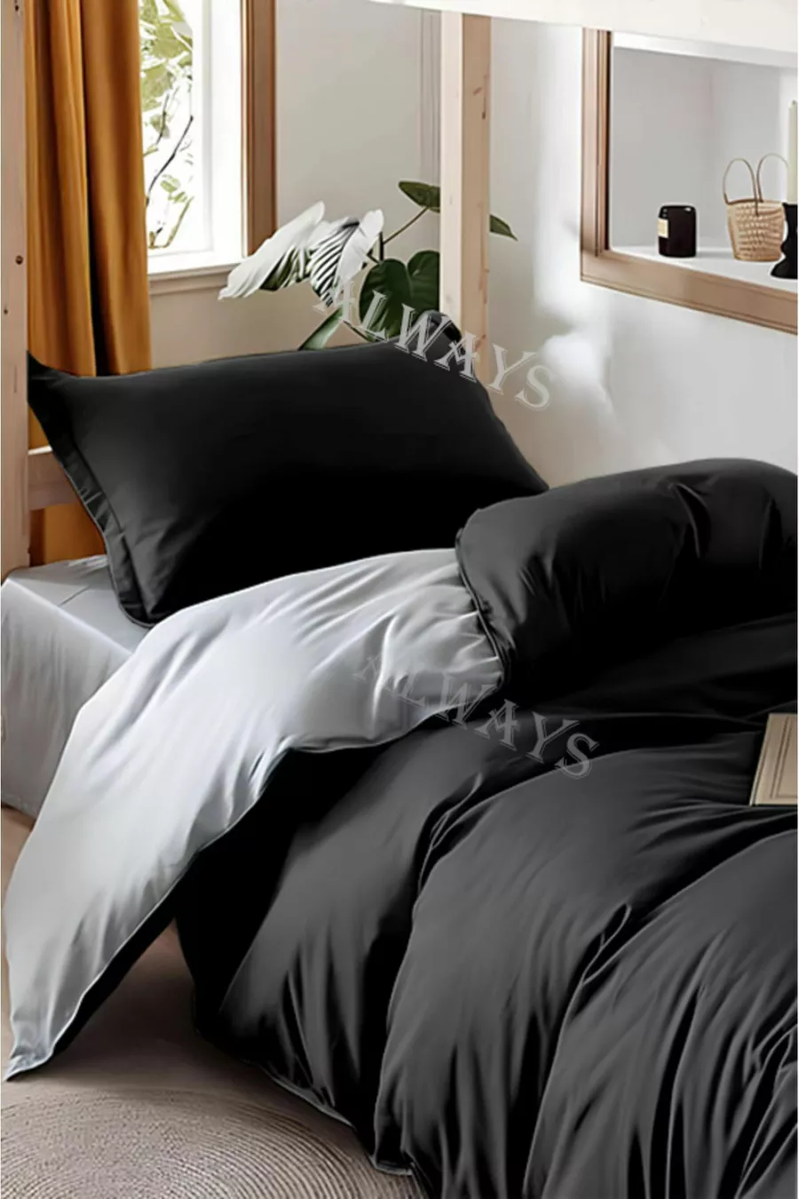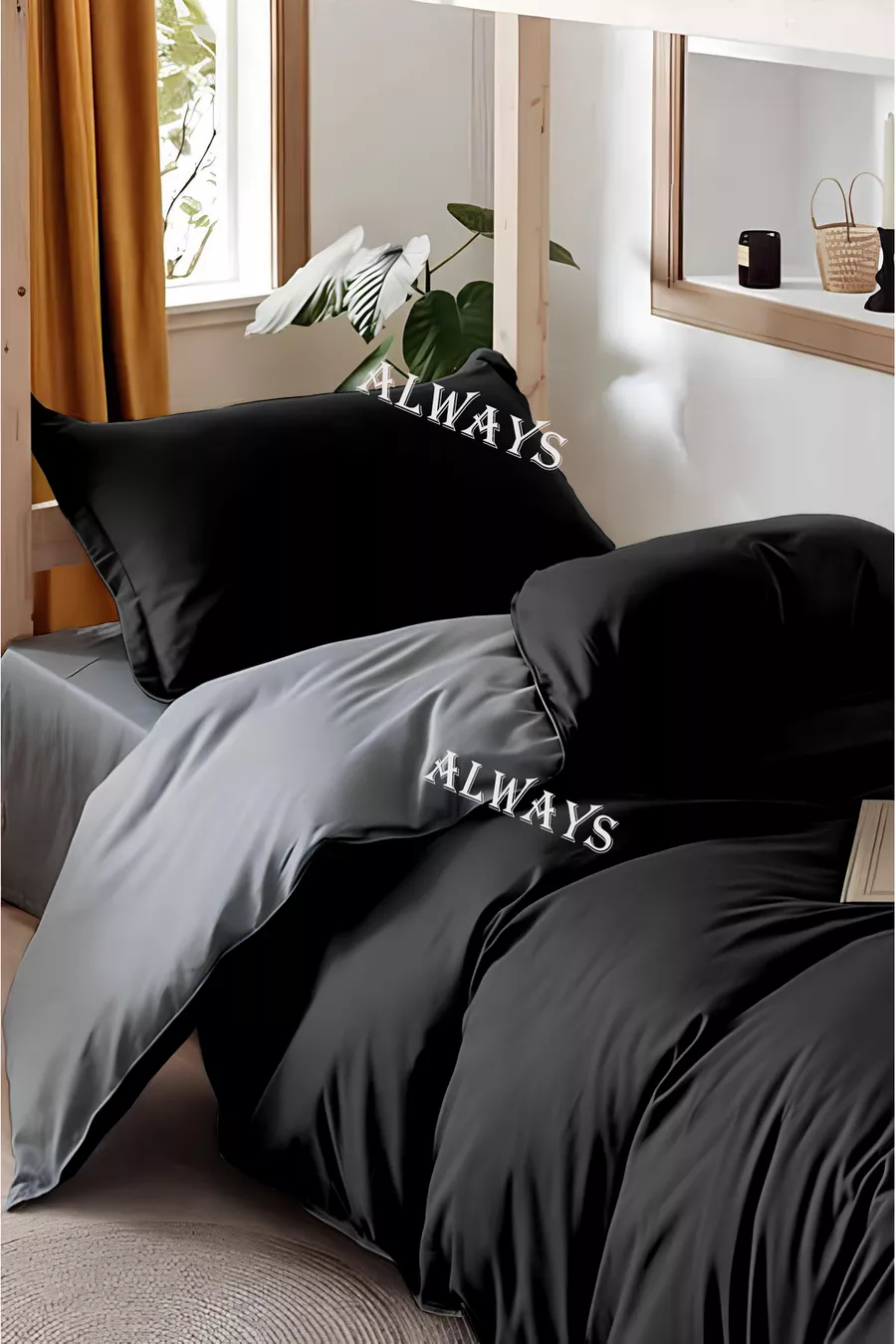 Set di biancheria da letto singolo reversibile con lenzuolo con angoli, nero-grigio