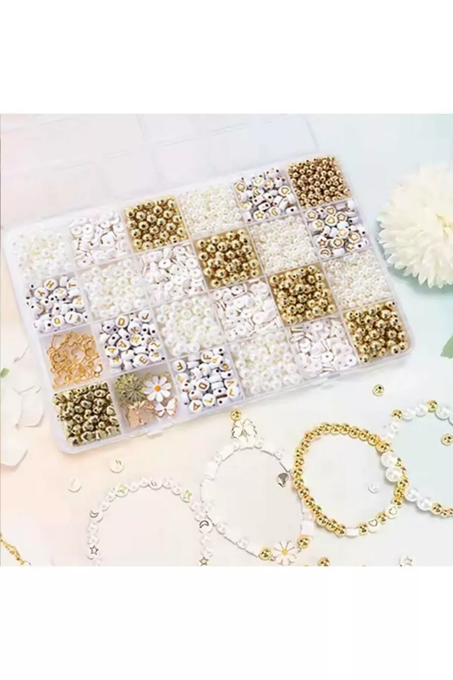 Set di creazione di braccialetti con perline di perla, lettere e accessori, materiali per hobby 4