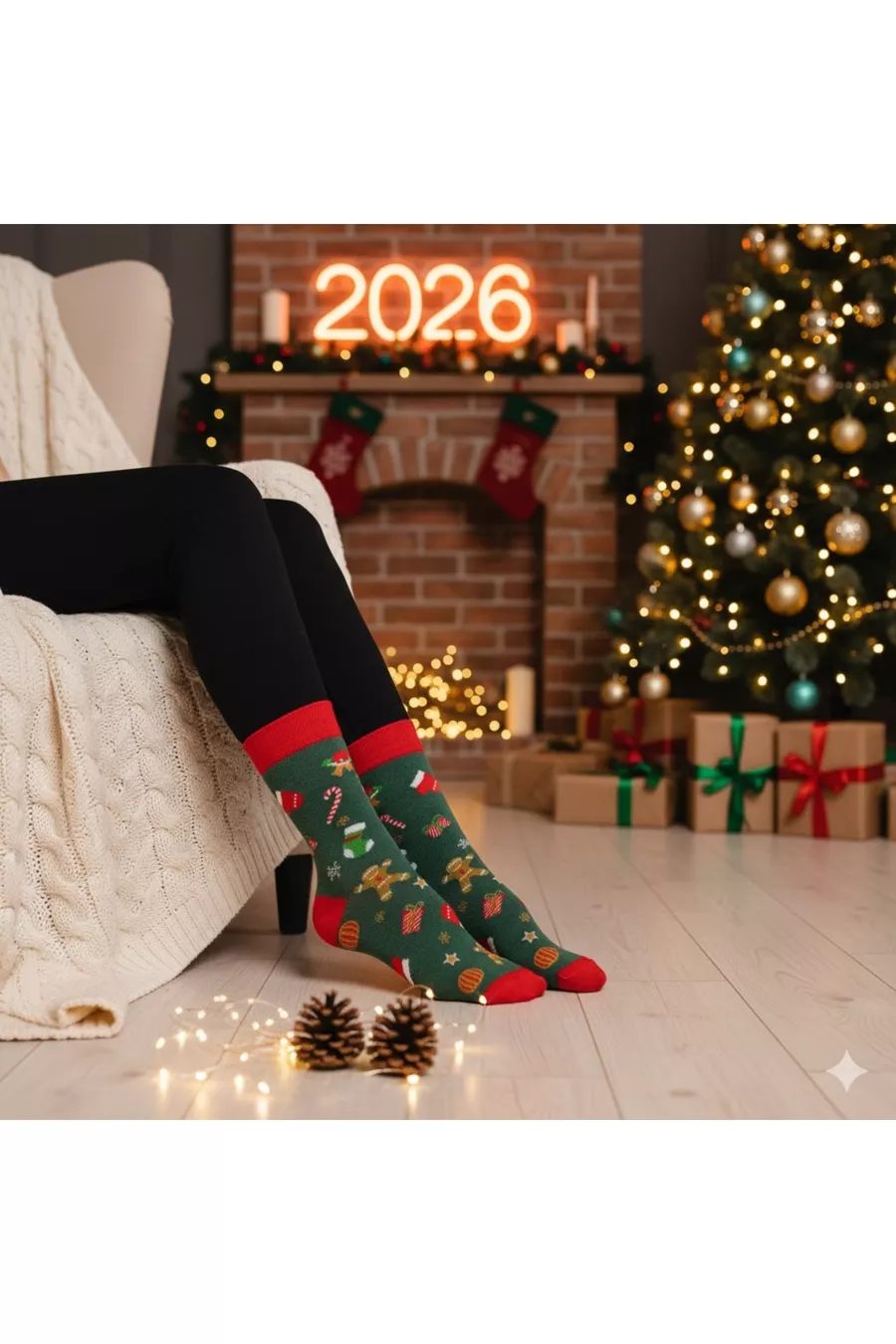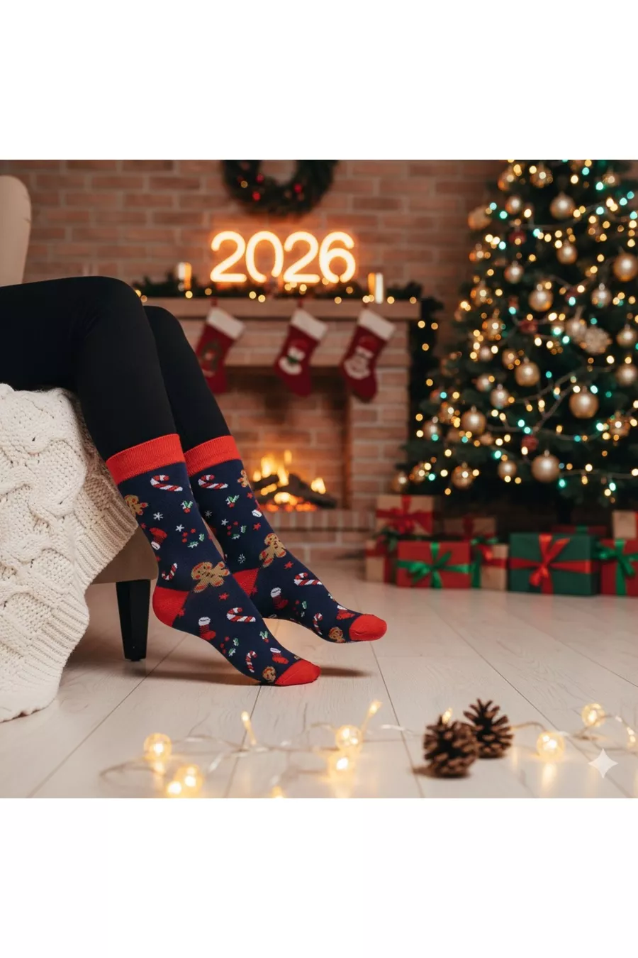 Set di 5 calzini a calzettone con motivo natalizio in confezione