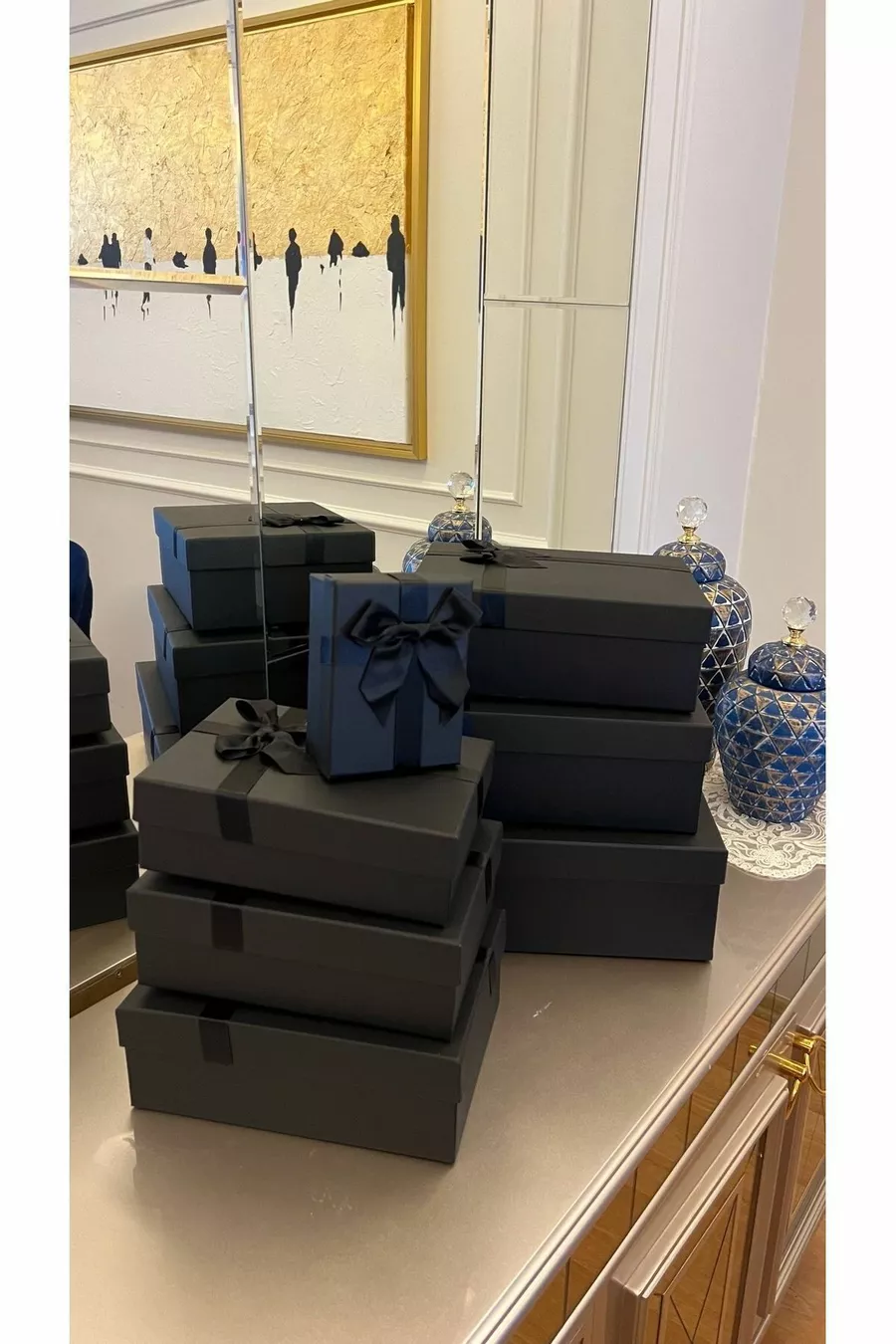 Set di Scatole Regalo Sposa e Sposo Con Fiocco Nero, Set di 7 Scatole Decorative in Cartone Rigido