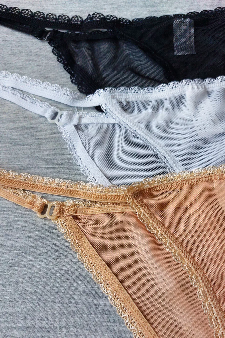 Set di 3 perizomi da donna con lati in spugna e davanti in tulle