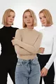 Set di 3 Body da Donna a Maniche Lunghe con Collo a Dolcevita – Nero Bianco Avorio