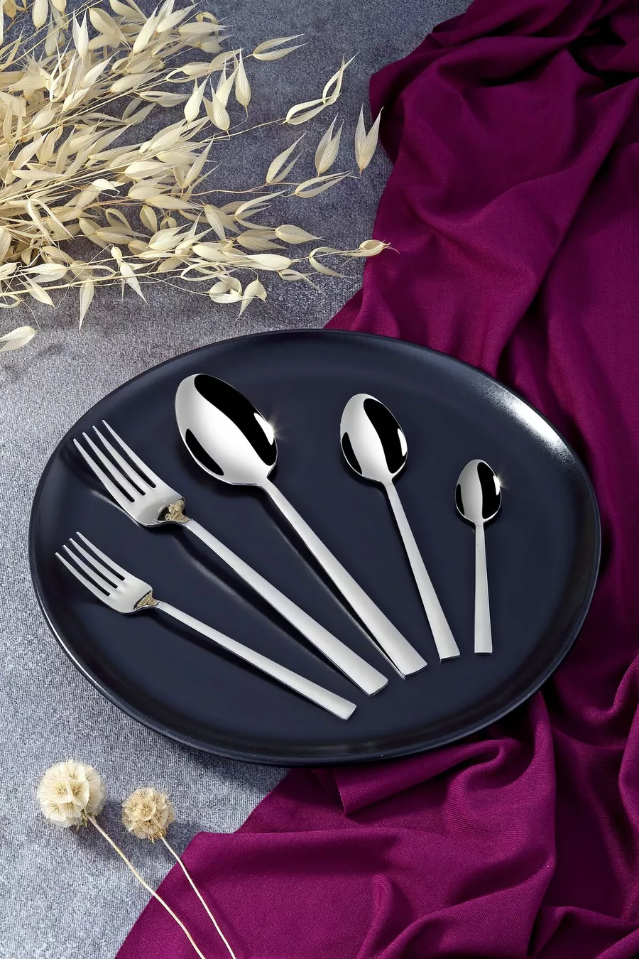 Set di pezzi di posate in acciaio semplice Tuana Kutulu per persone, coltelli e cucchiai