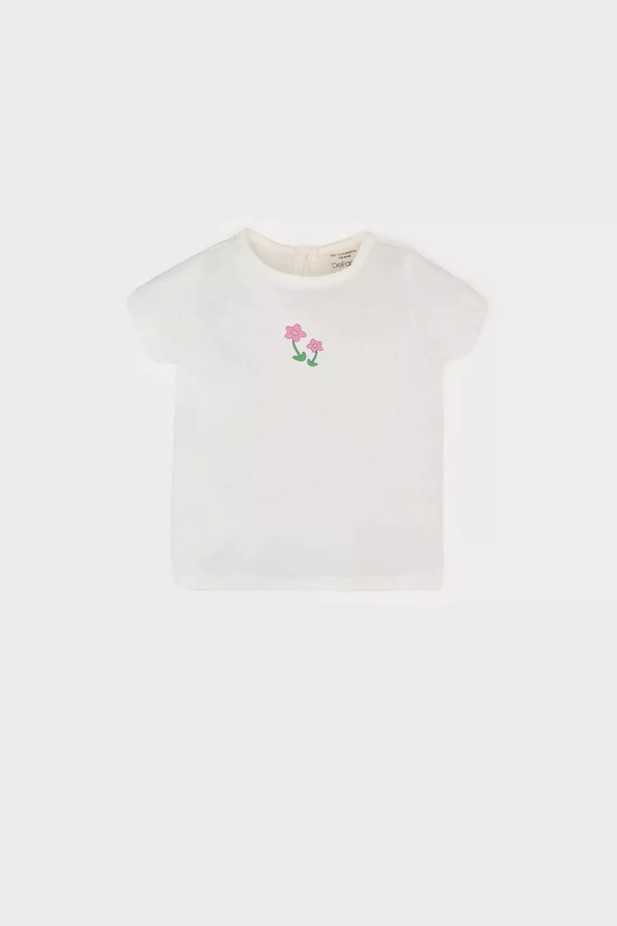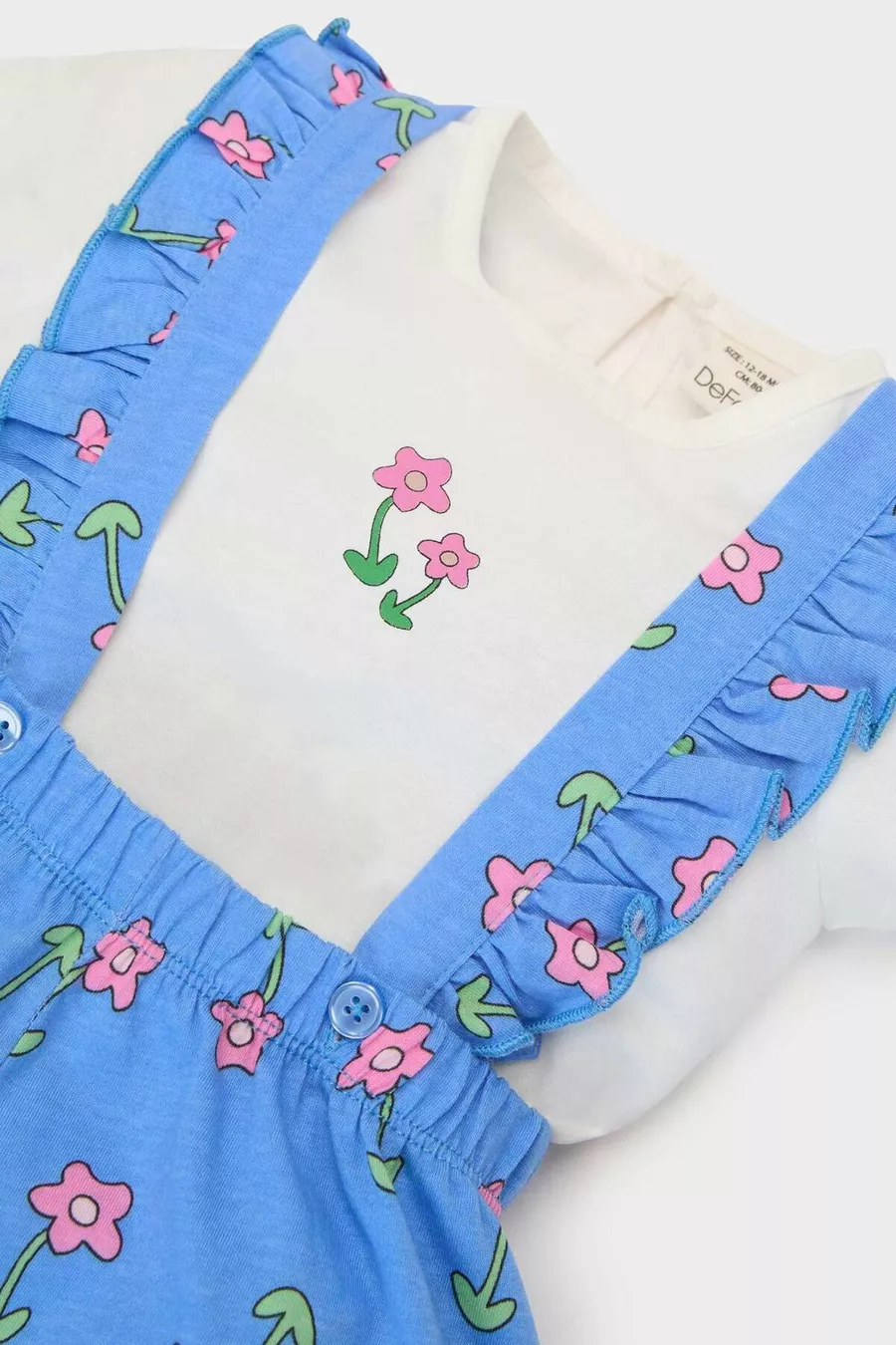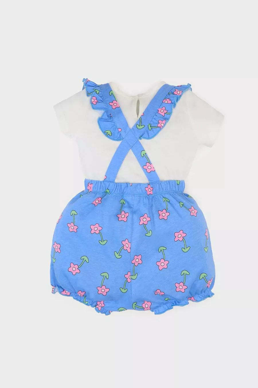Set per bambina 2 pezzi Maglietta a maniche corte in cotone con fiori e salopette SM