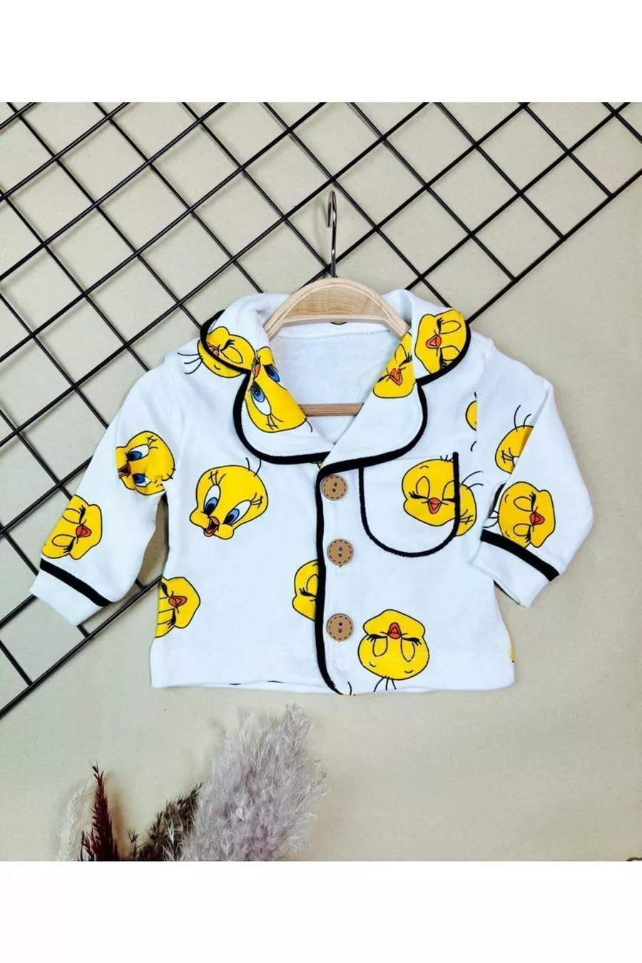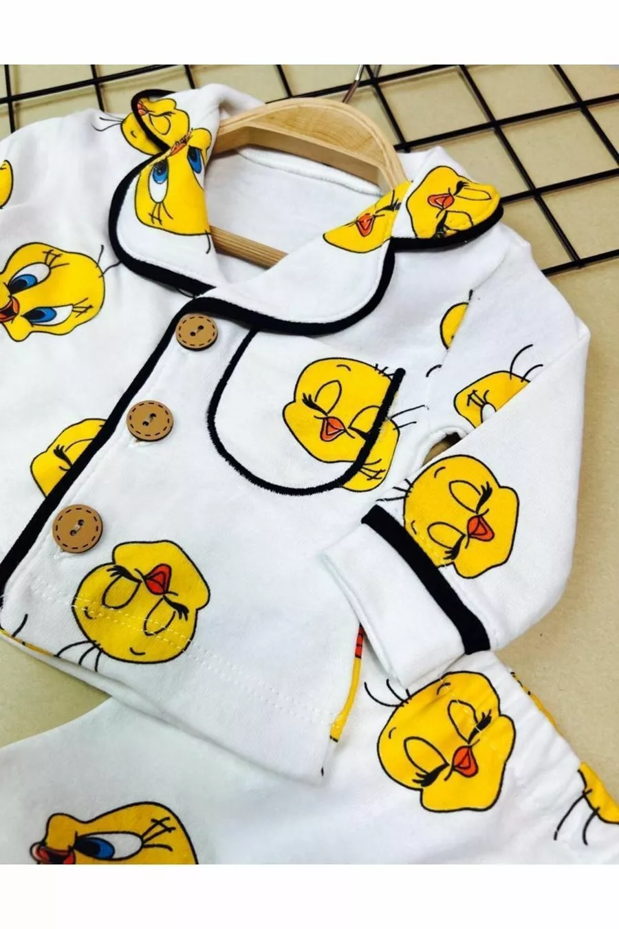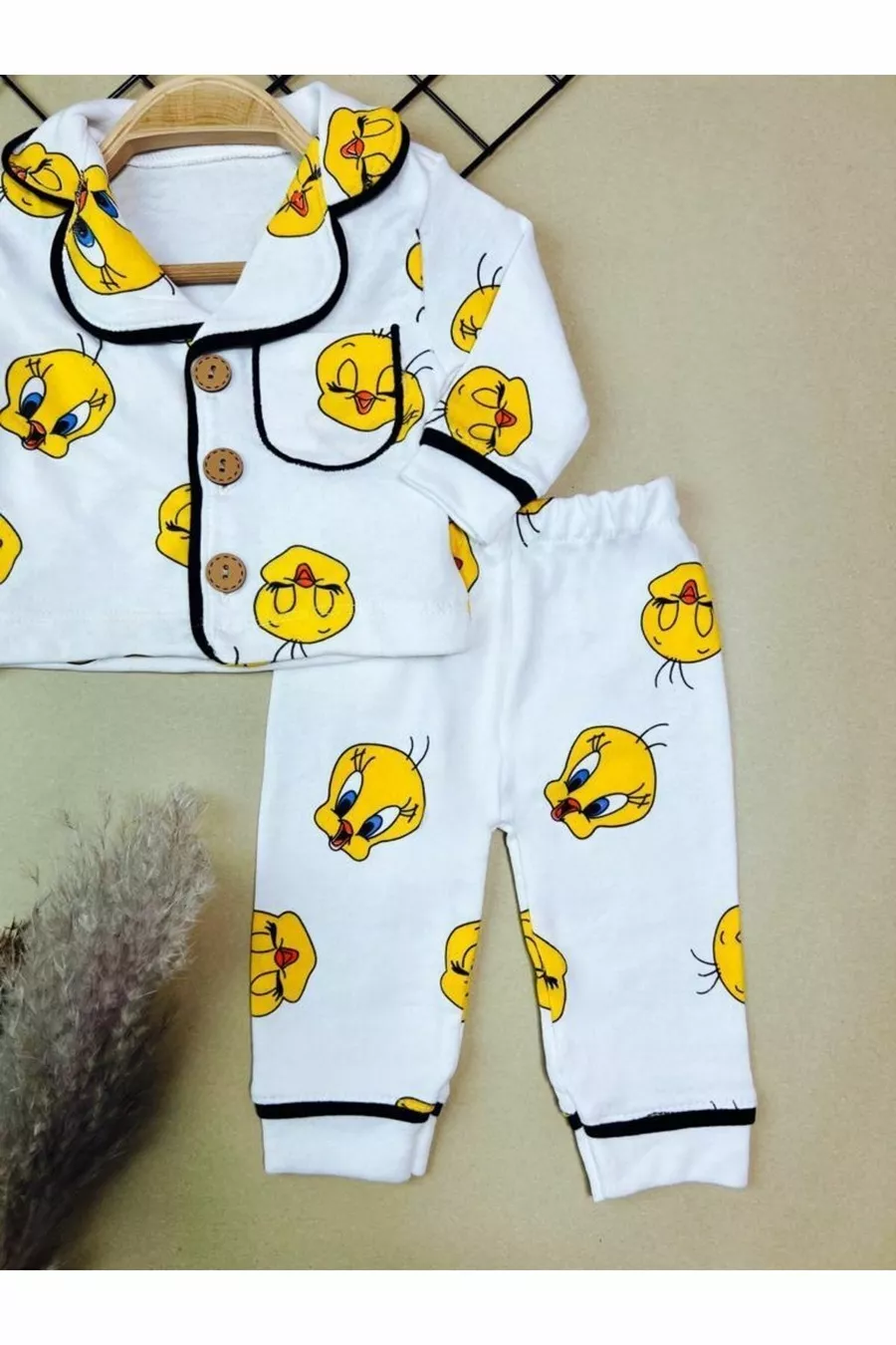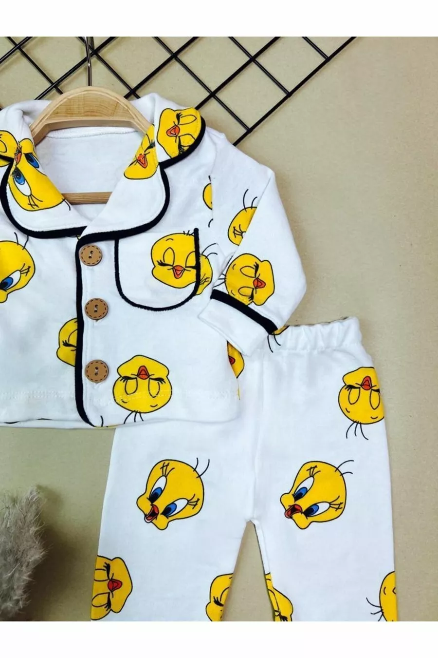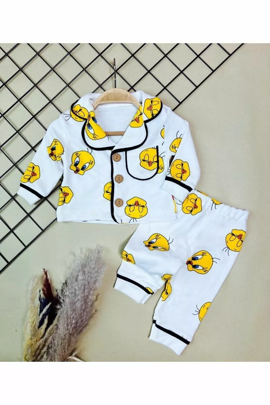 Set pigiama unisex per neonati con stampa Tweety, completo top e pantaloni con bottoni sul davanti ( mesi)