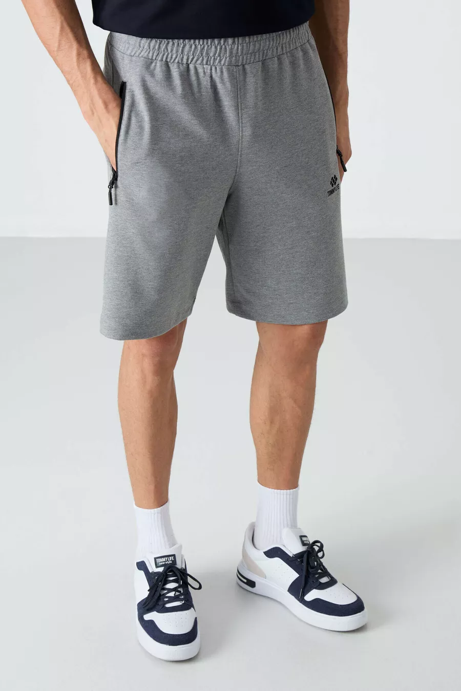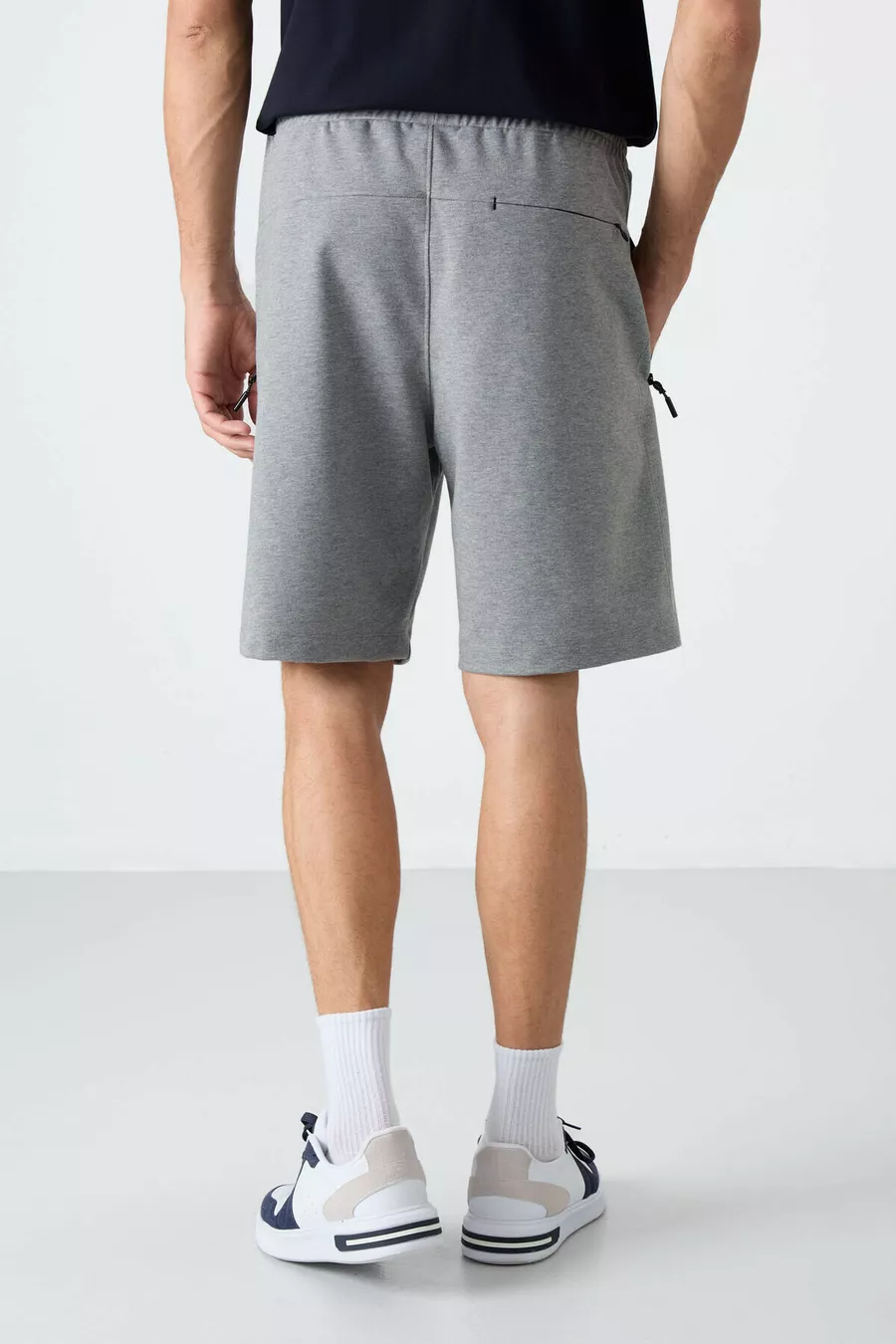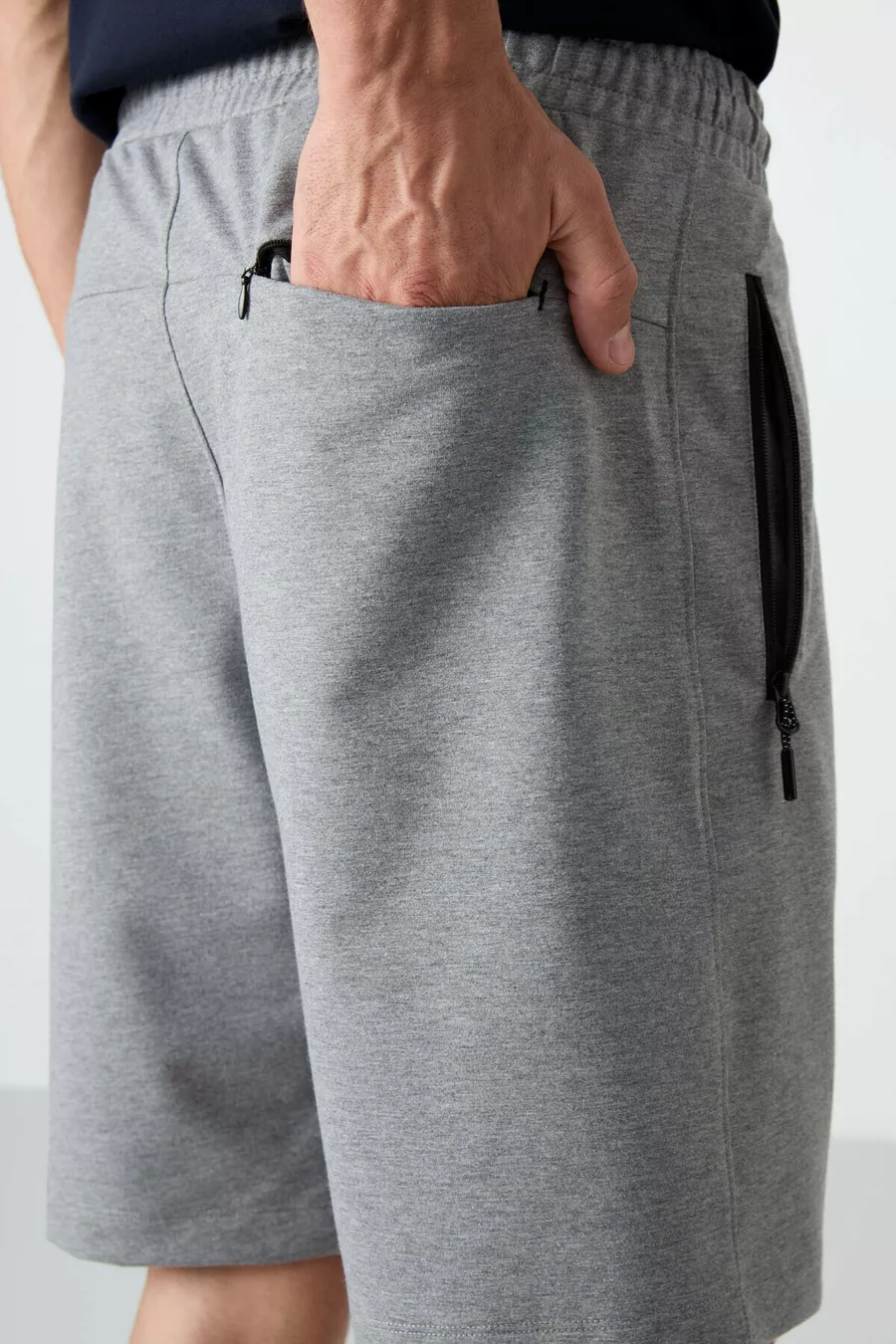 Short da uomo grigio mélange con zip nascosta, tasca posteriore e coulisse, taglio standard -