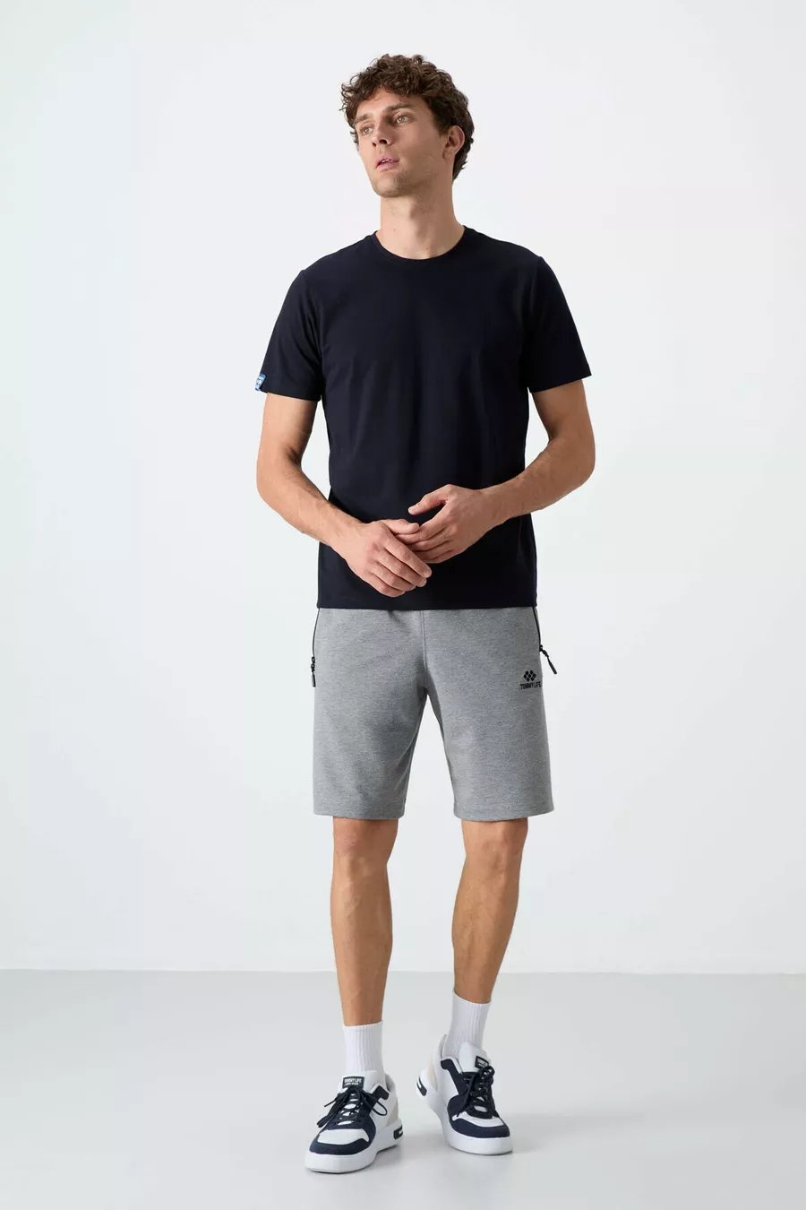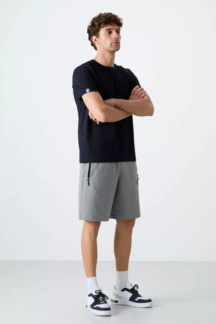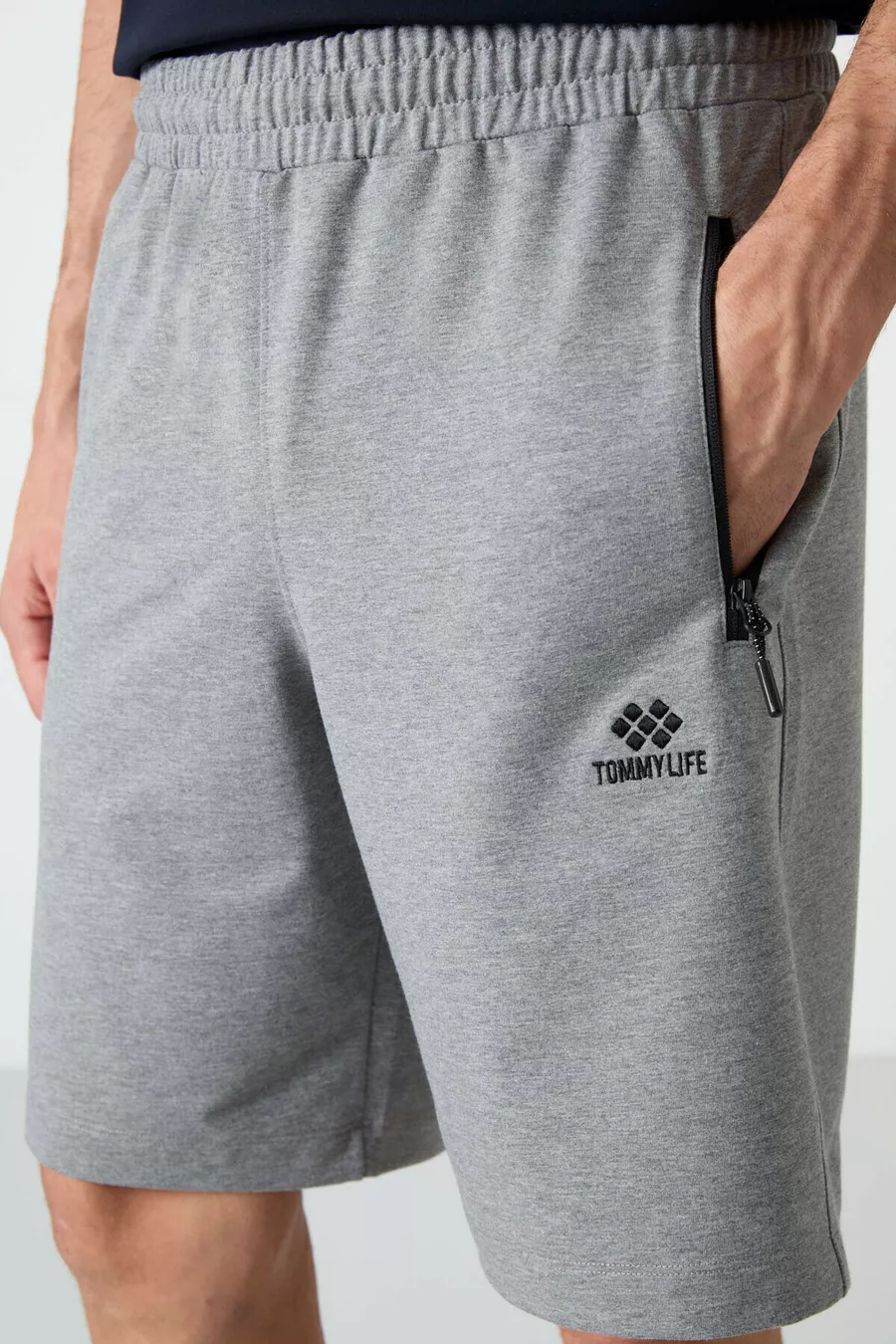 Short da uomo grigio mélange con zip nascosta, tasca posteriore e coulisse, taglio standard -
