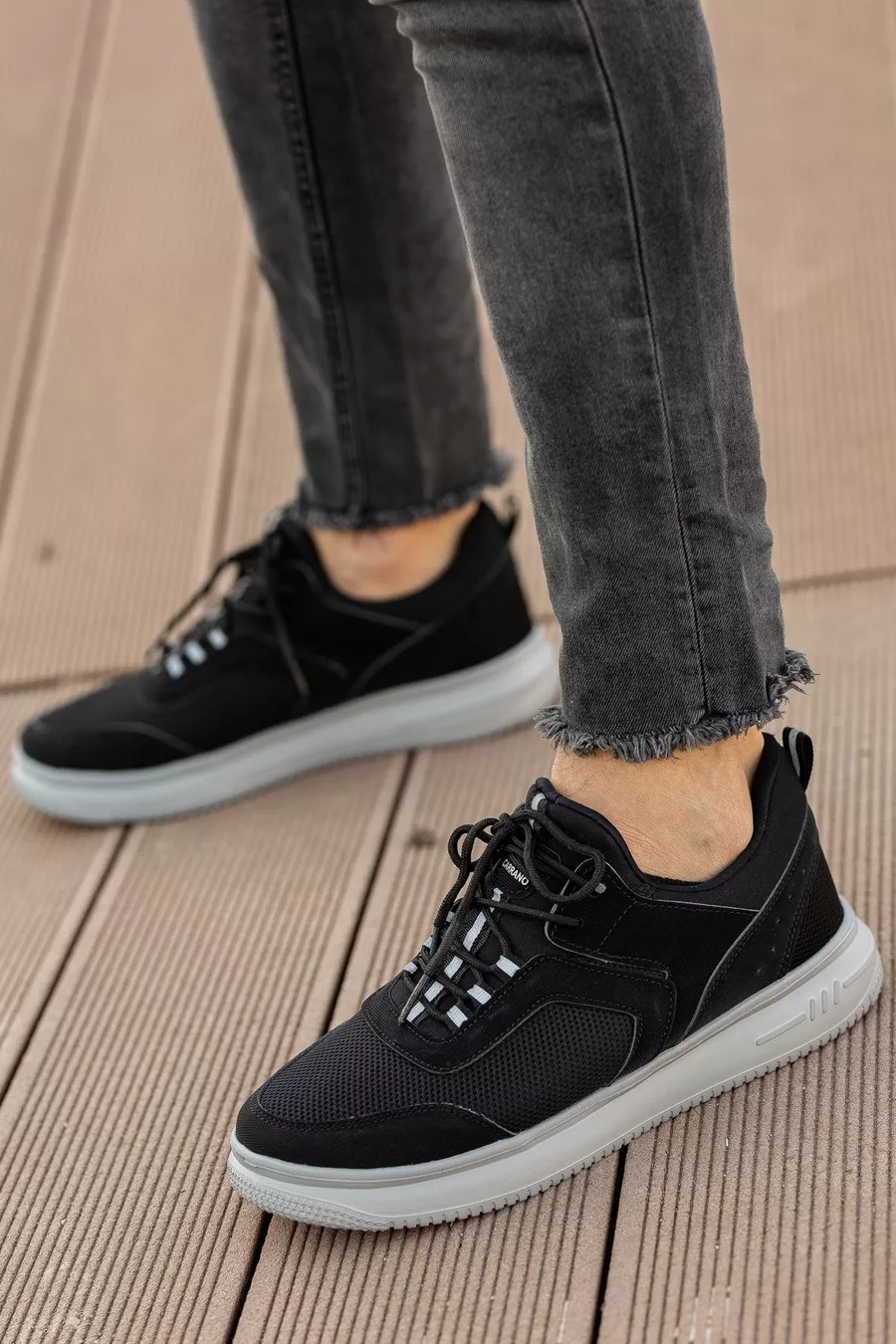 Sneaker da uomo nera fumé casual con suola spessa stringata scarpe da trekking comode e durevoli leggere