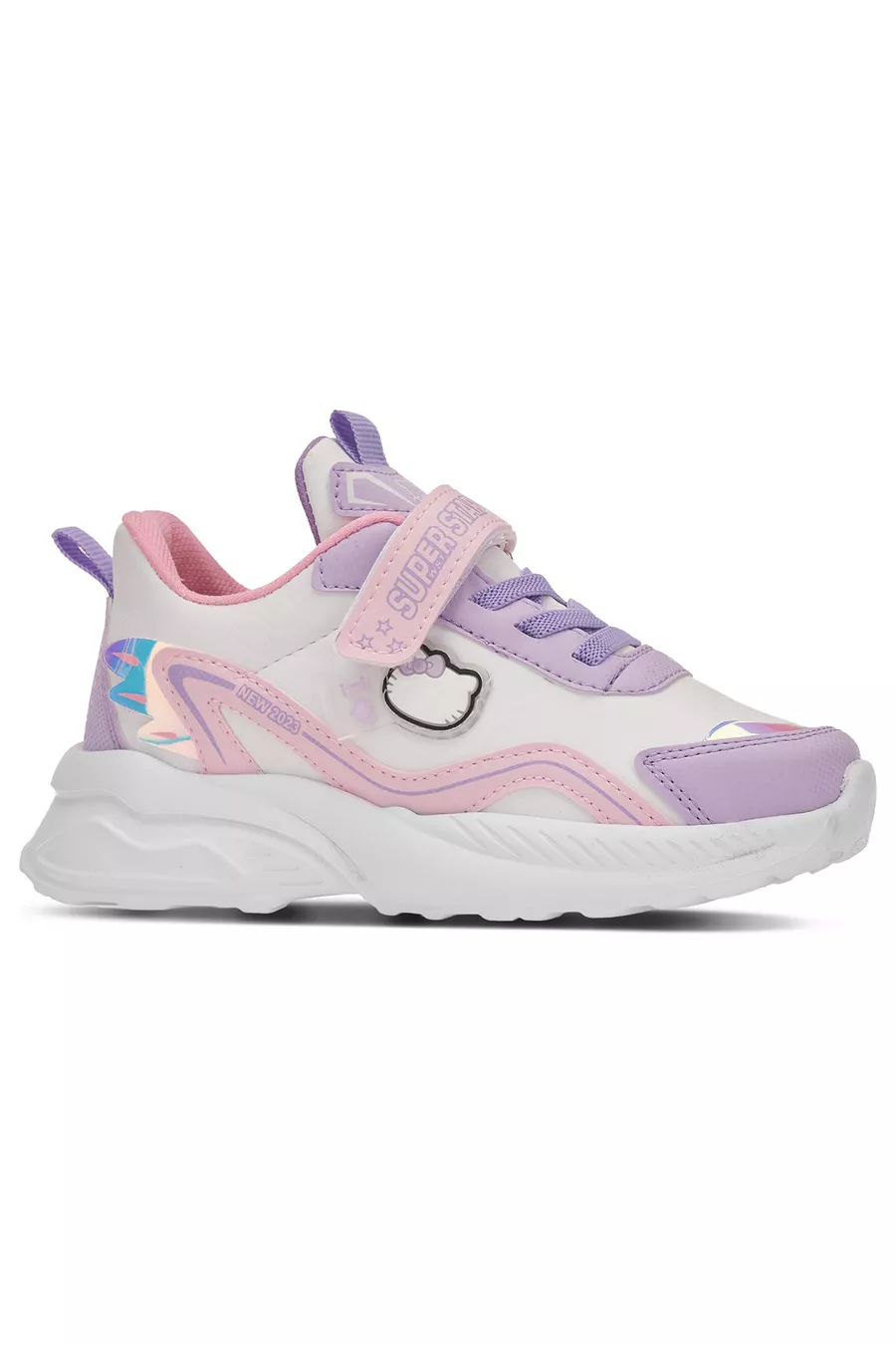 Sneaker da bambina quotidiana lilla cipria, suola spessa, lacci in gomma, chiusura a strappo, scarpa sportiva leggera