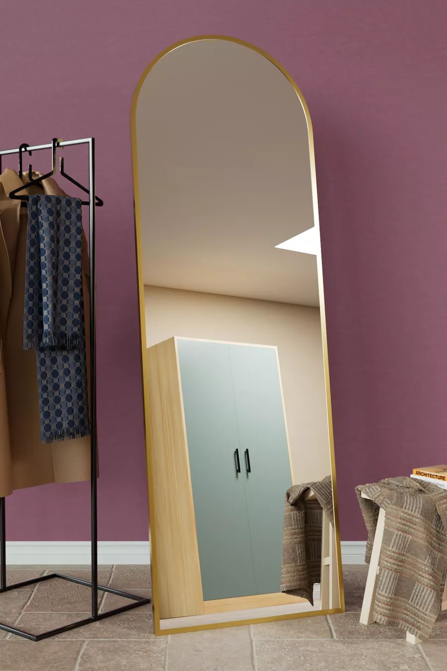 Materiale: Metallo Colore: Oro Numero di pezzi: 1 pezzo Forma: Rettangolare Tipo: Specchio da terra Origine: TR Caratteristica: Su piedistallo