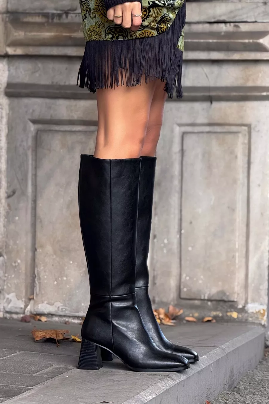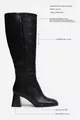 Stivale Donna con Tacco Grosso Nero Opaco con Punta Quadrata