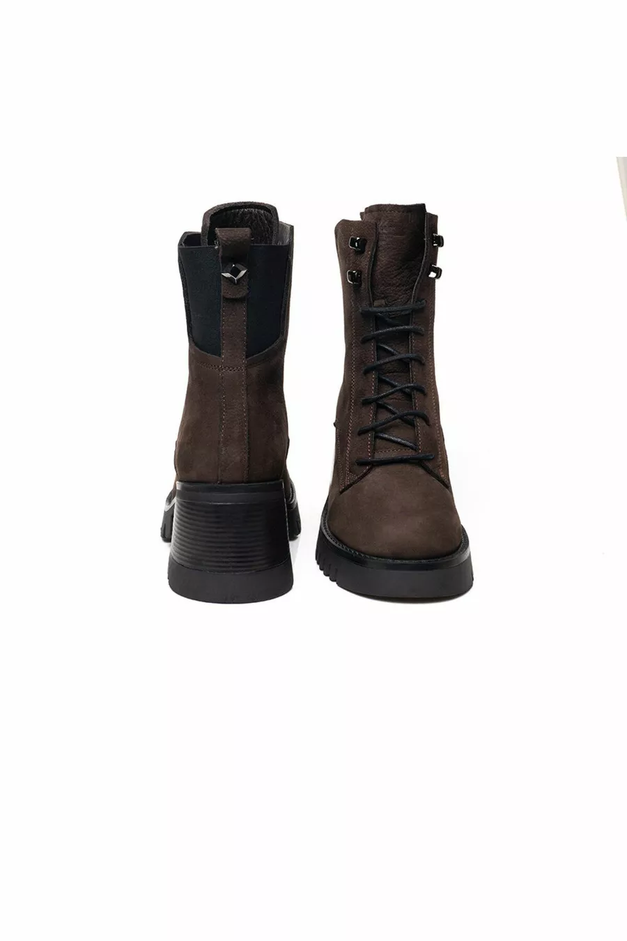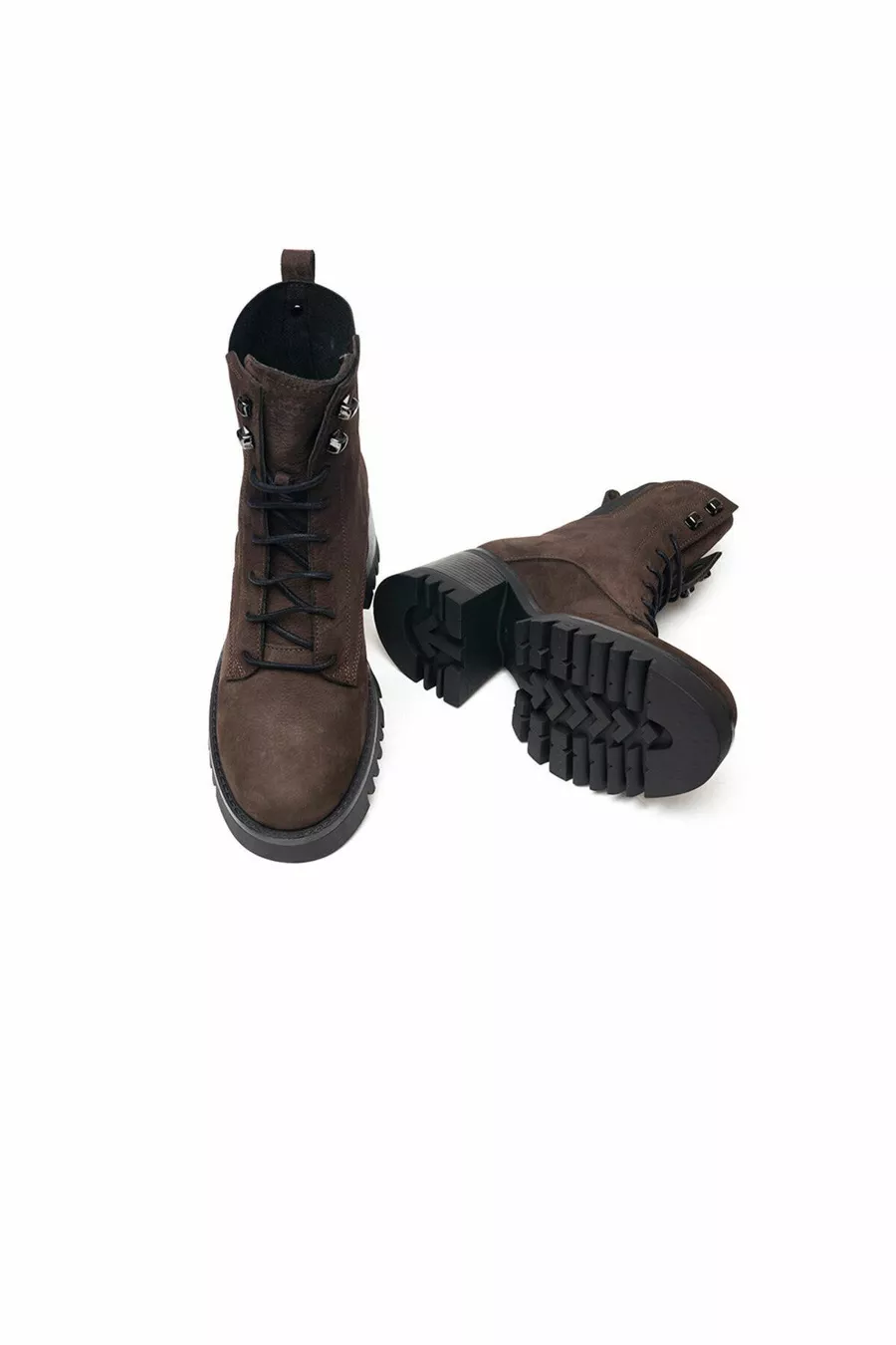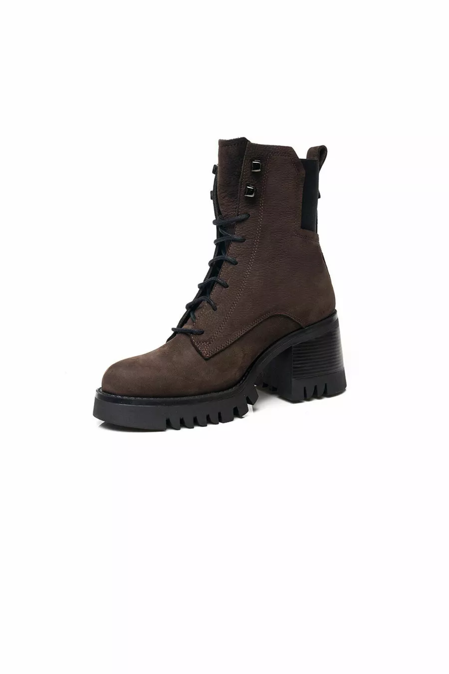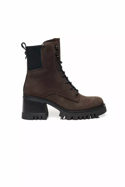 Stivali militari da donna in vera pelle marrone