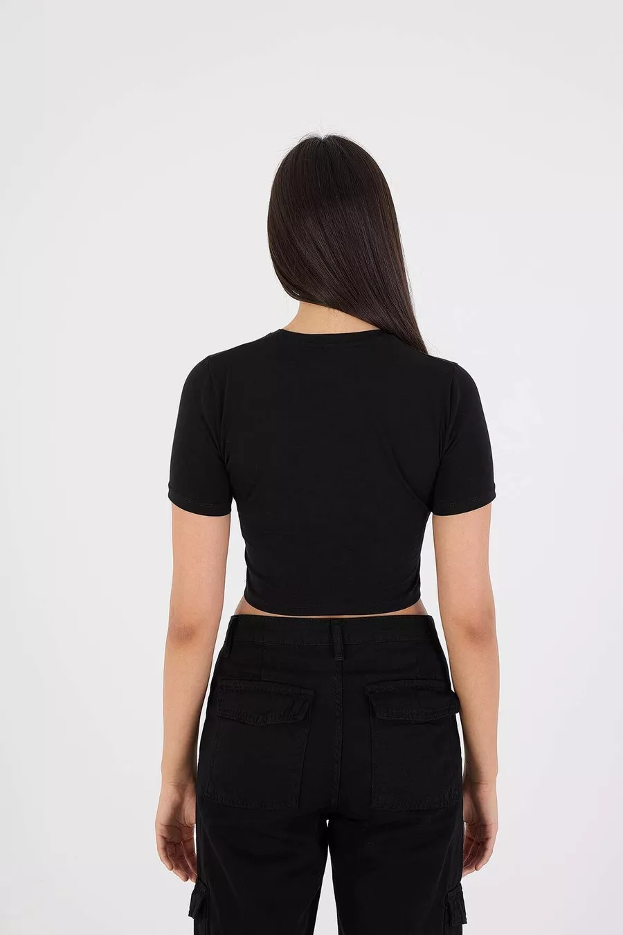 T-shirt basic cropped con scollo a girocollo