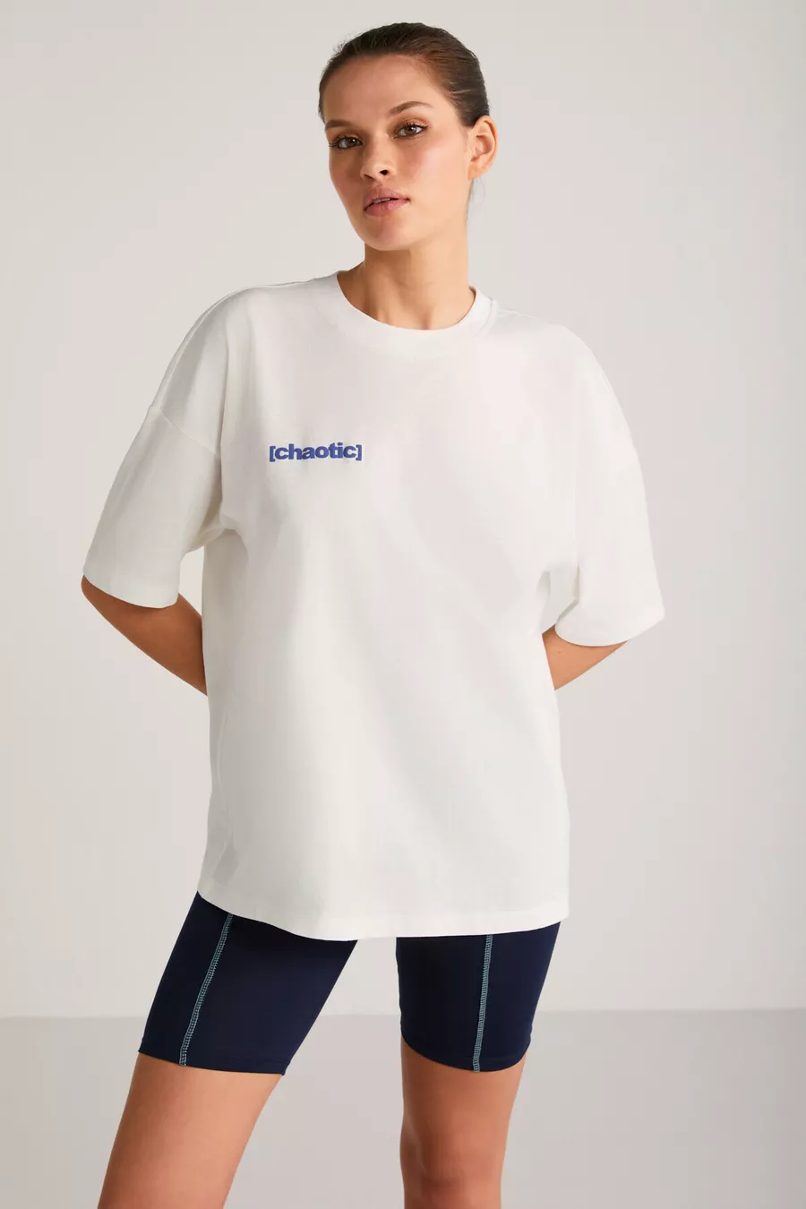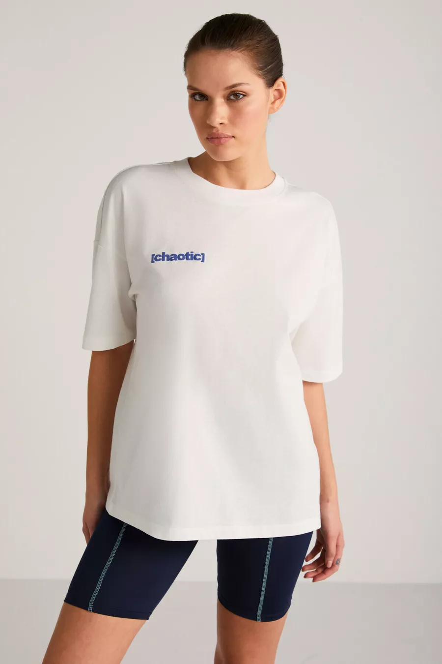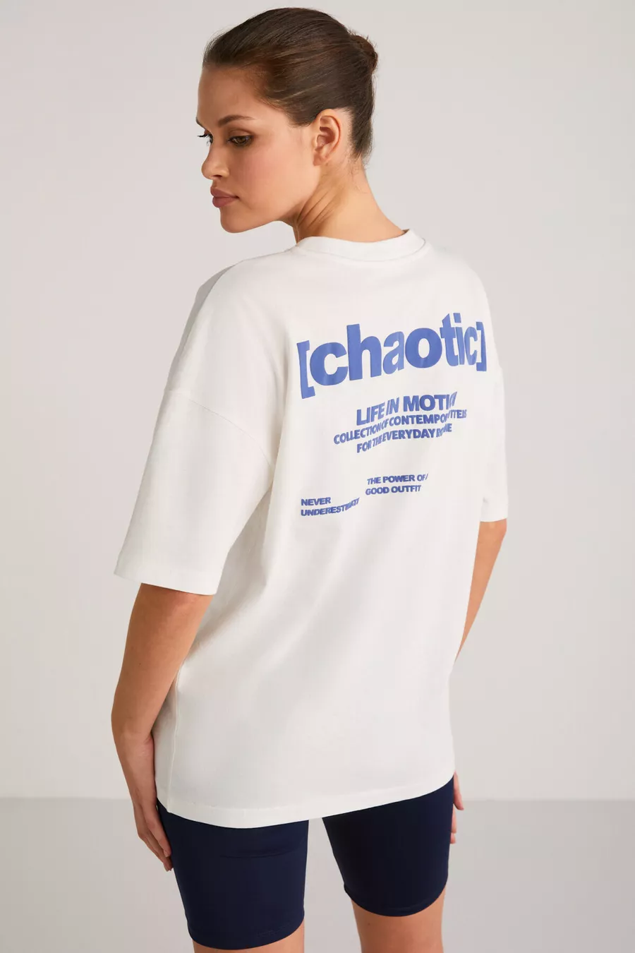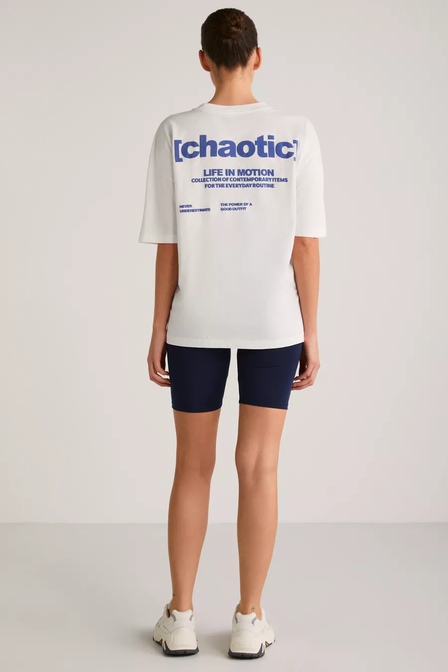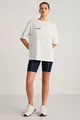 T-shirt da donna Arcadıa con scritte sul davanti e sul retro, color crema/blu
