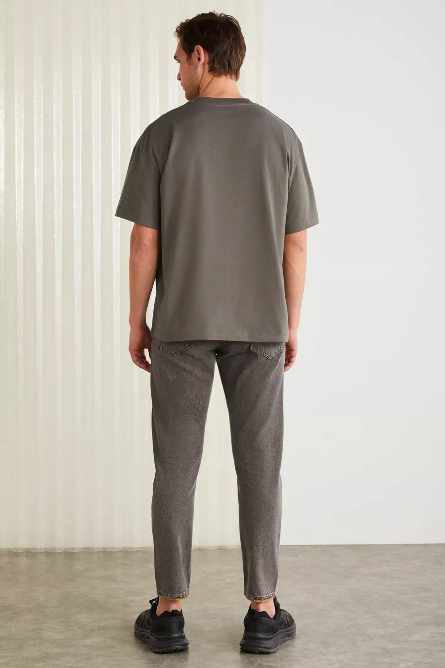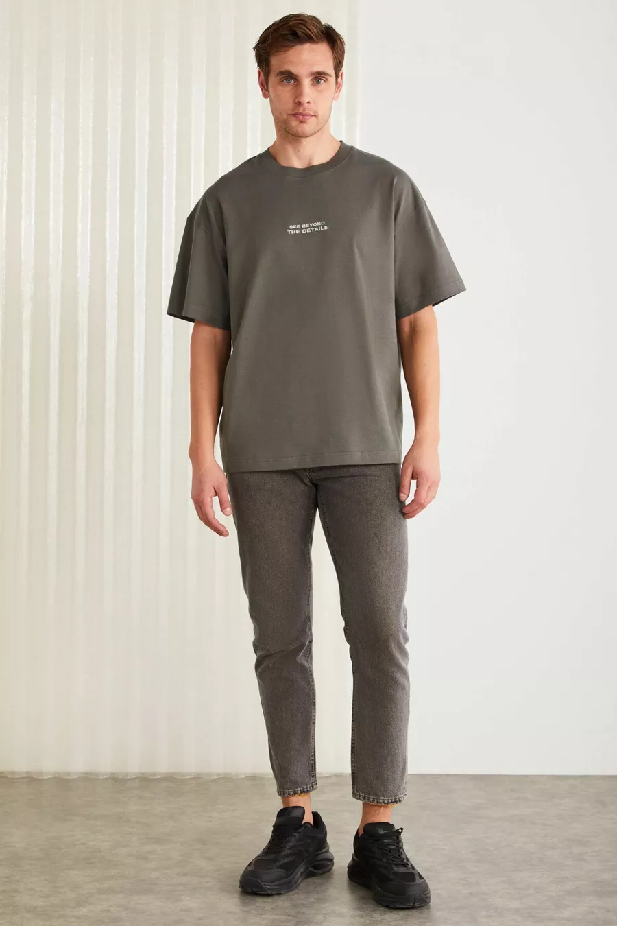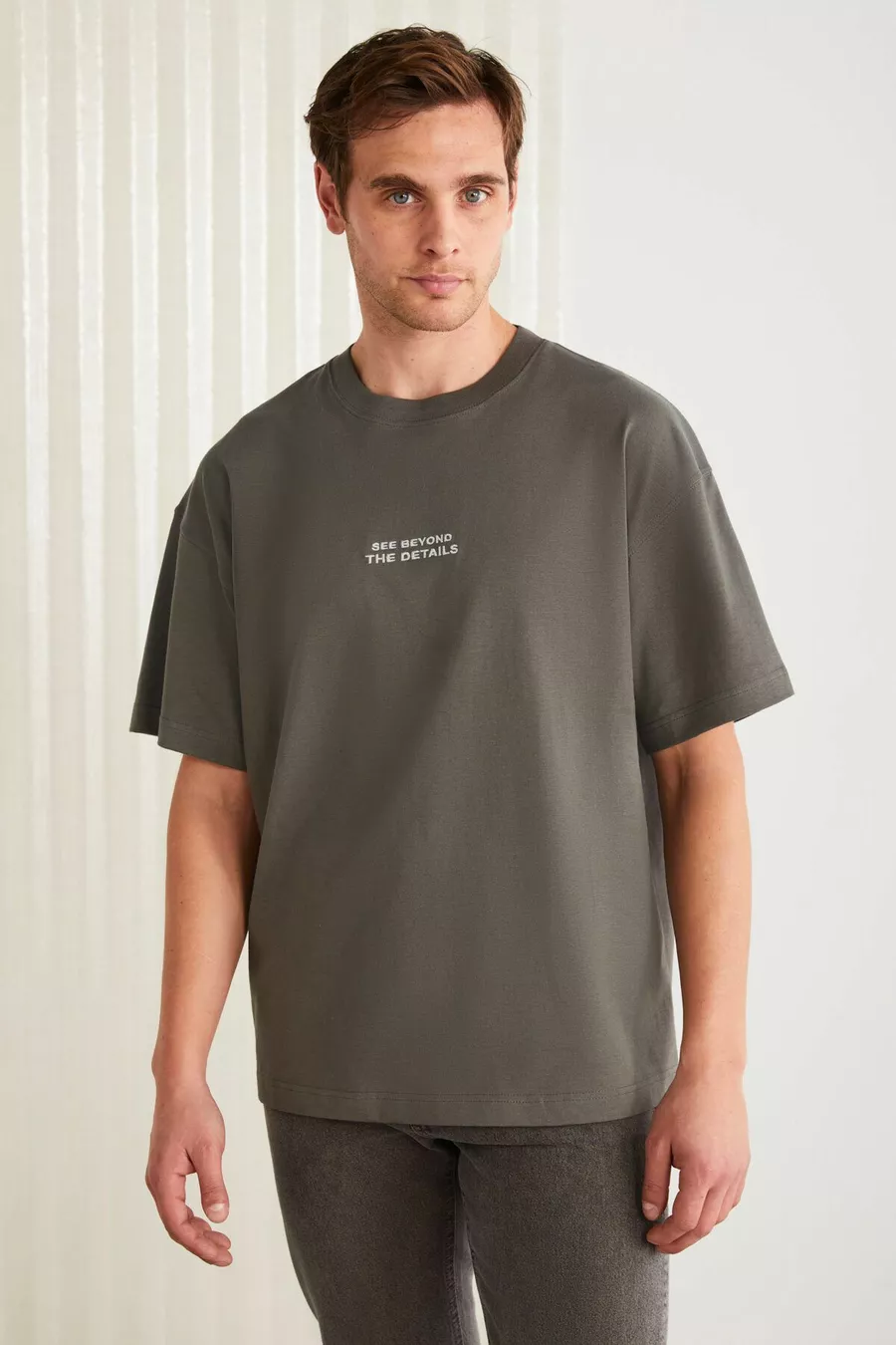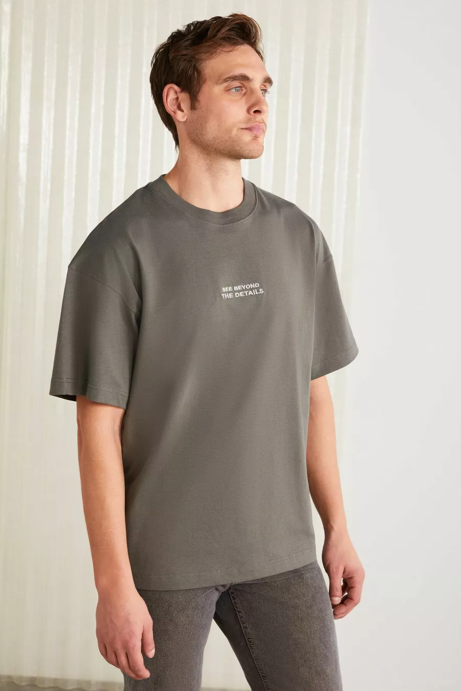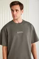 T-shirt grigia da uomo Vıto in cotone % biologico, con ricamo, taglio oversize ampio e maniche corte