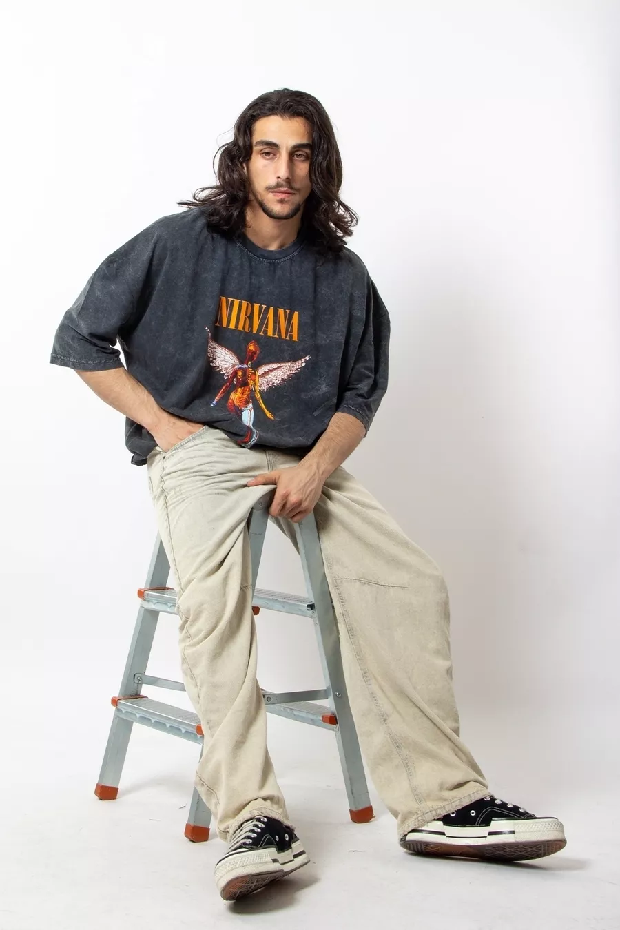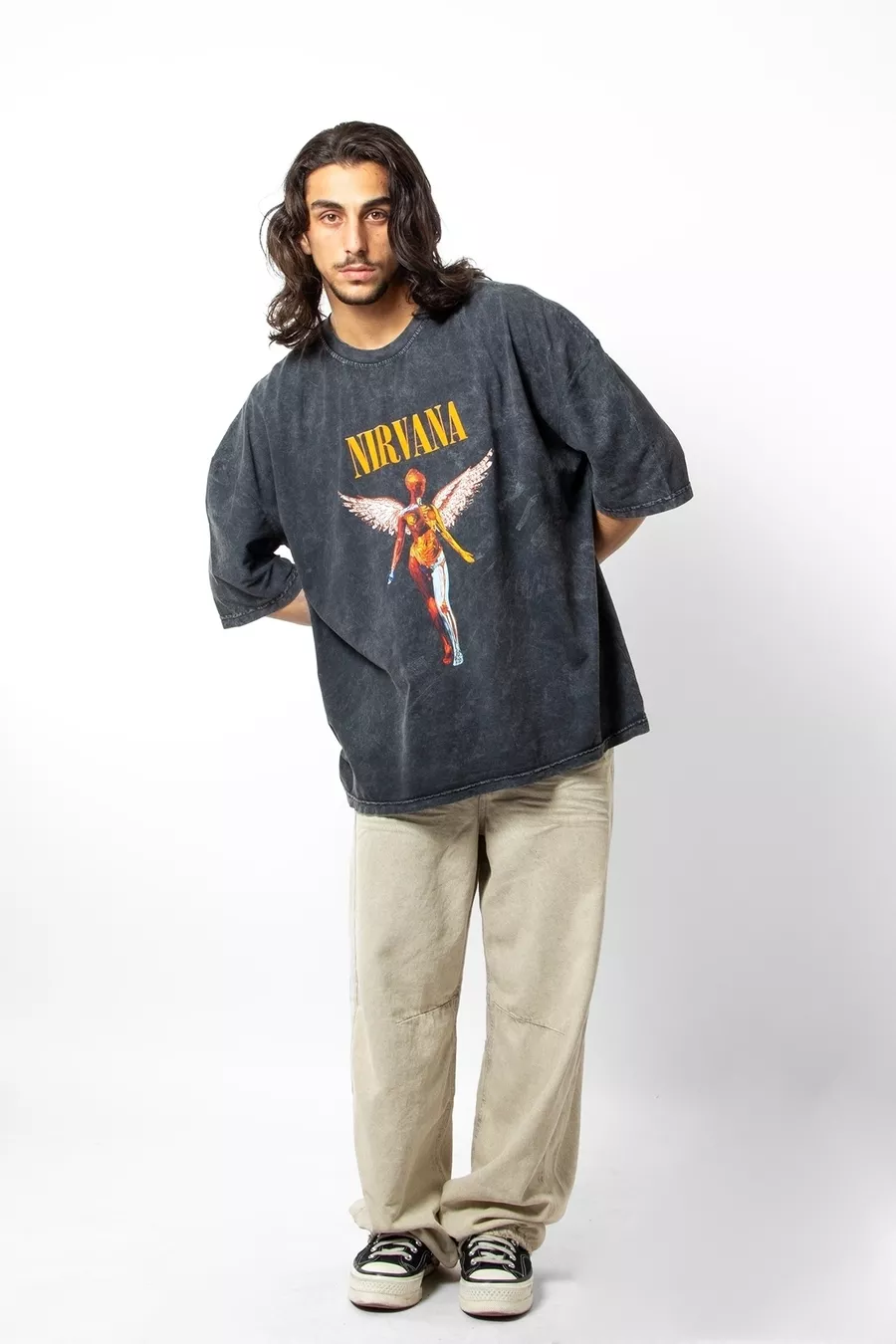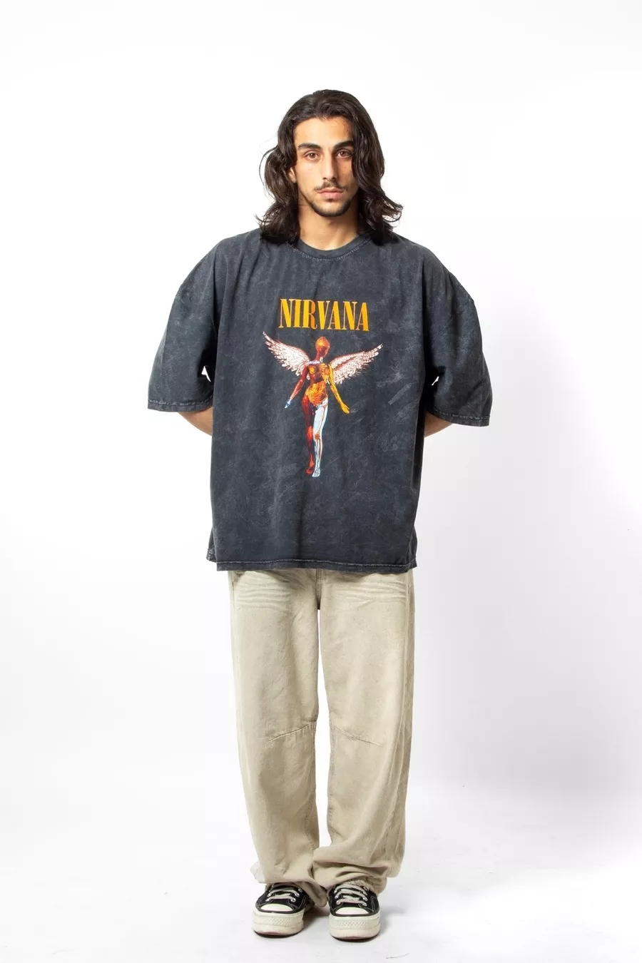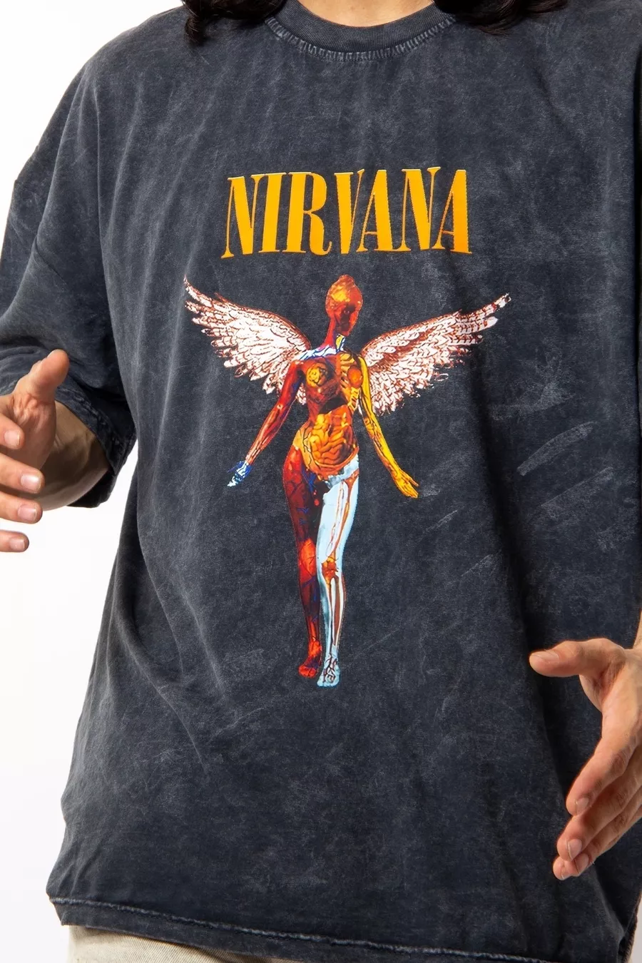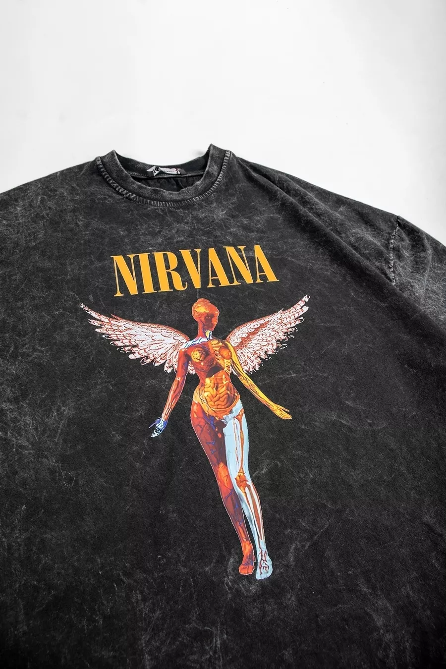 T-shirt Oversize Unisex Nirvana Angel con Stampa Effetto Fumo Lavato