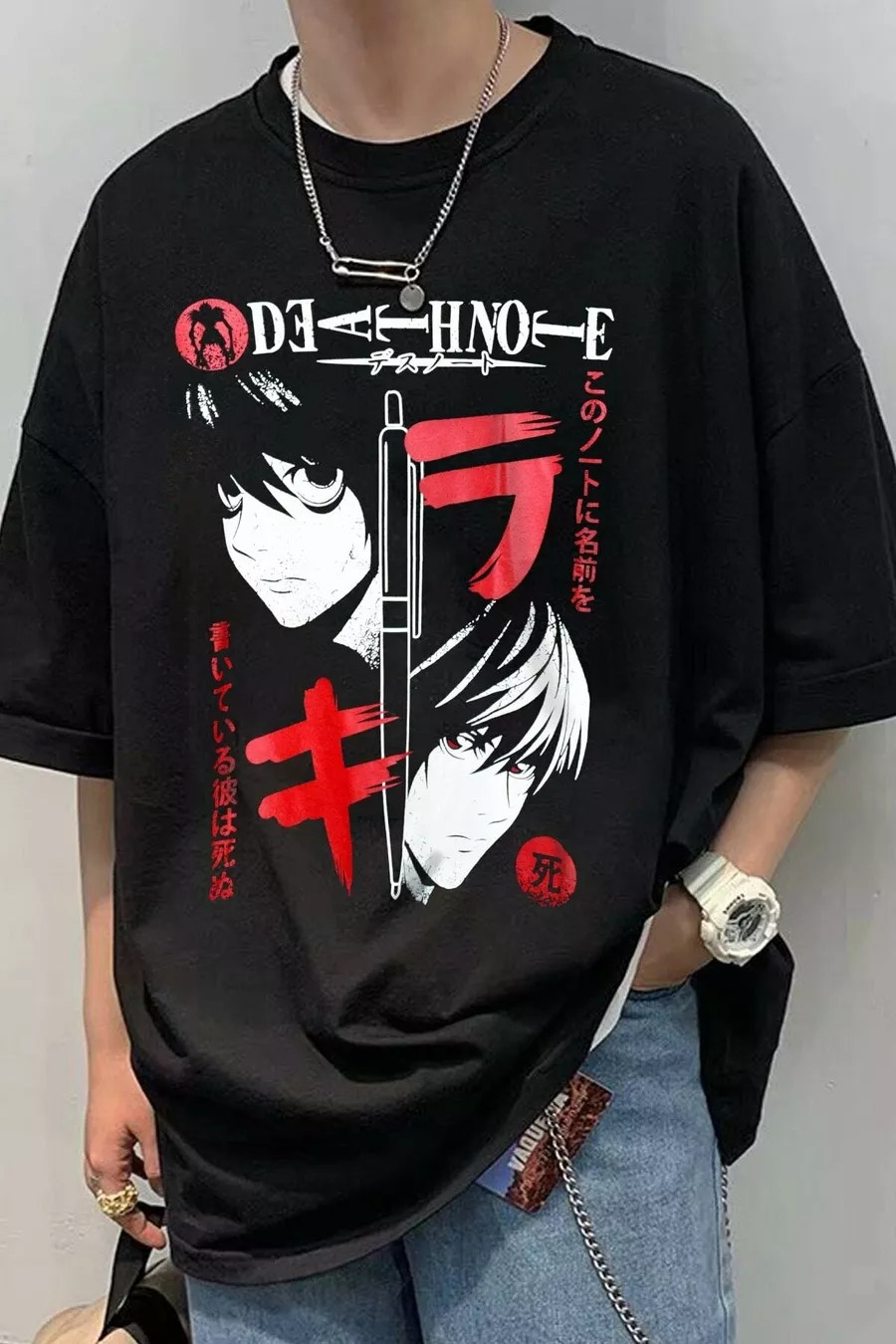 T-shirt oversize unisex anime nera con stampa Death Note
