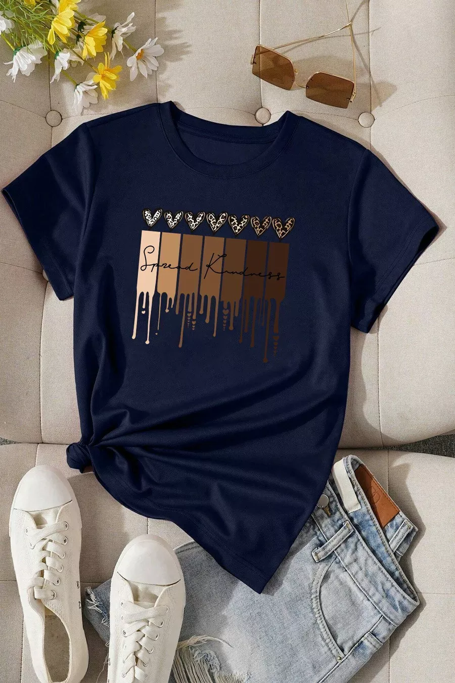 T-shirt oversize unisex con stampa cuore leopardata