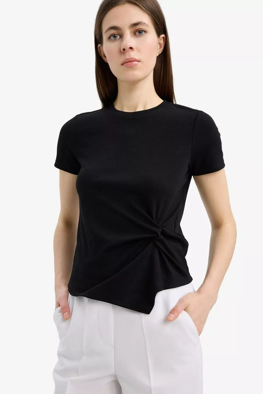 T-shirt slim fit a taglio aderente, con girocollo a coste e maniche corte SP