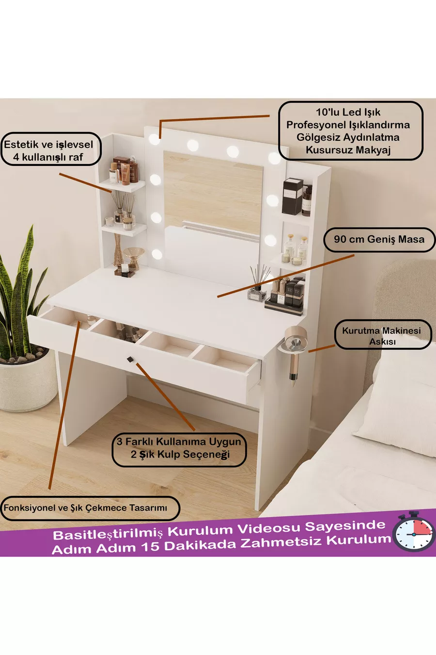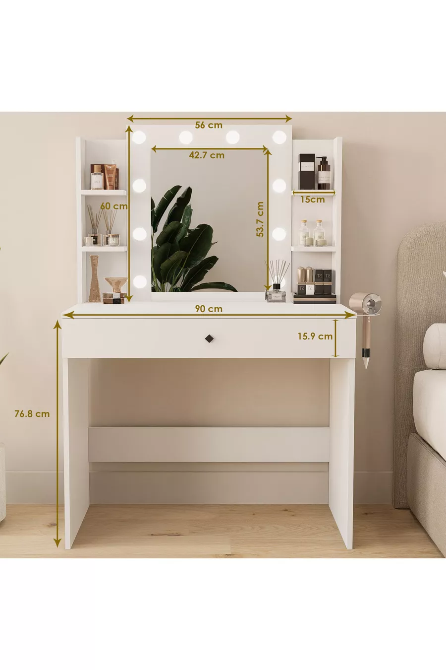 Materiale: Suntalam Caratteristica: Con piedini Colore: Bianco Durata della garanzia: 2 anni Altezza: 77 cm Larghezza: 90 cm Funzione specchio: Con specchio Profondità: 45 cm Stile: Moderno Tema / Stile: Moderno Origine: TR