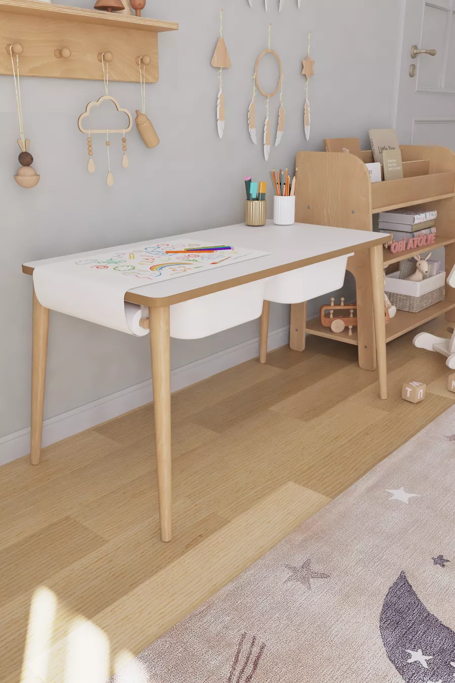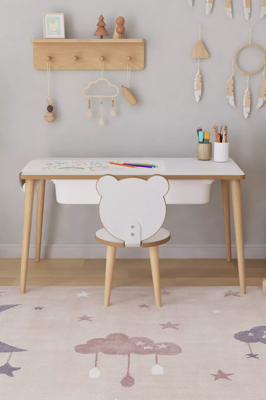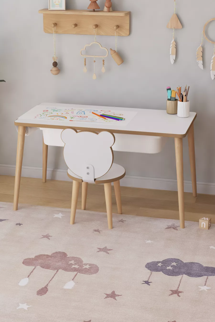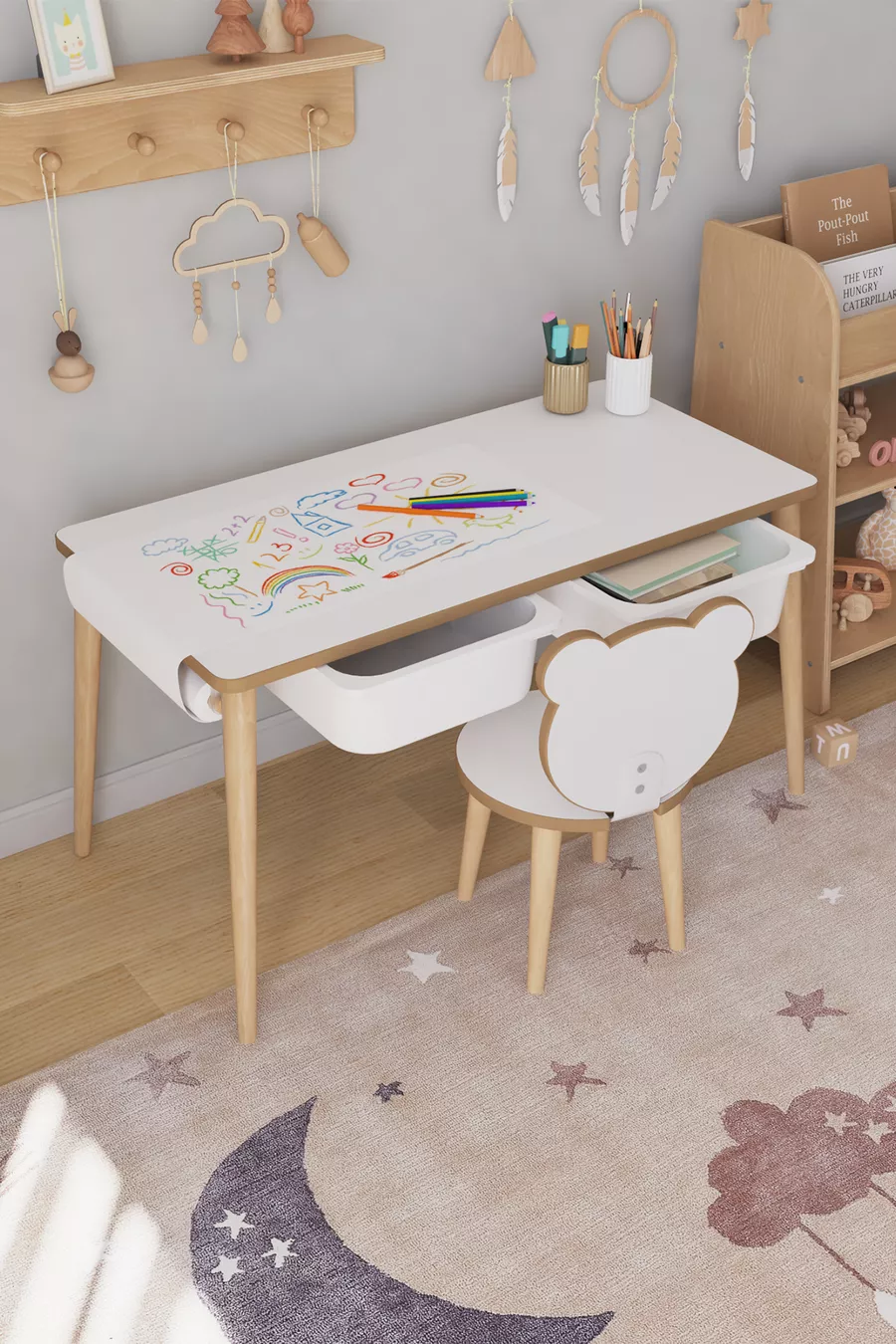 Tavolo da gioco e attività per bambini con carta da disegno a rotolo, 1 sedia e cassetto - Panda