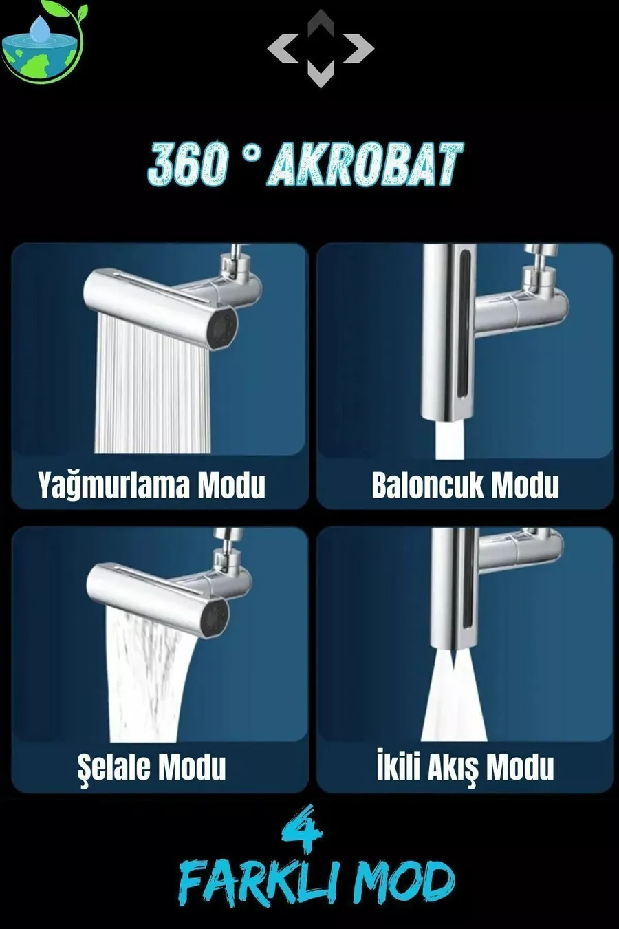 Testa di Rubinetto Acrobata Cromata Funzionale con Risparmio Idrico e 4 Modalità Diverse a °