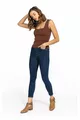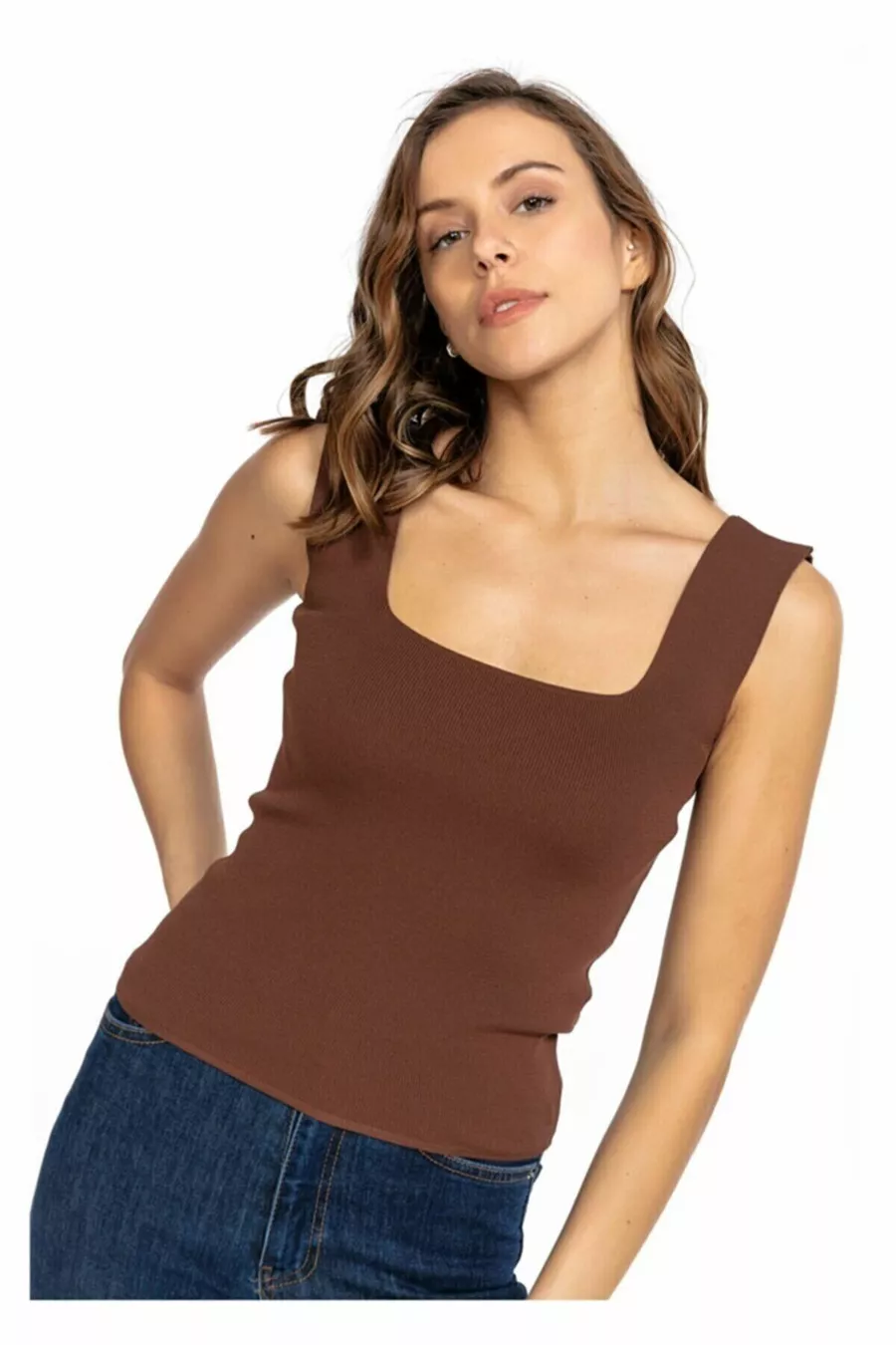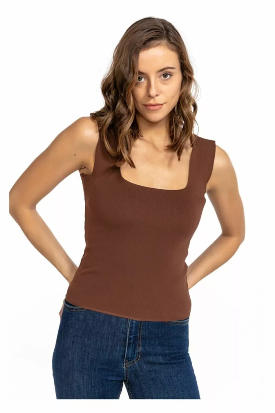 Top a maglia donna, colore caffè, con scollo quadrato e spalline
