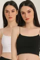 Top a spalline sottili da donna 2 pezzi, canottiera corta, nero-bianco