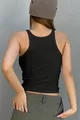 Top basic da donna nero in tessuto costina con spalline sottili