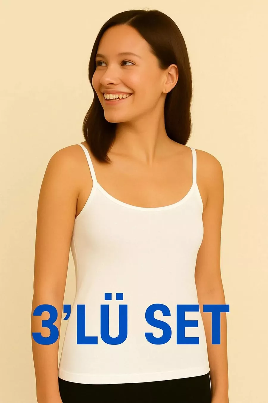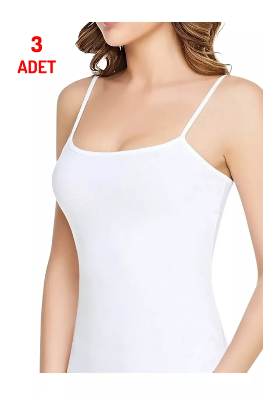 Top bianco da donna con spalline sottili, confezione da 3 pezzi, produzione in cotone