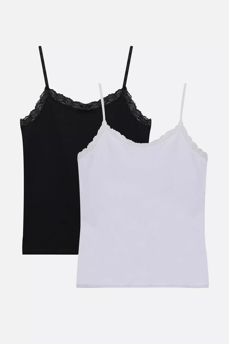 Top con pizzo da donna, set da 2, con spalline sottili regolabili