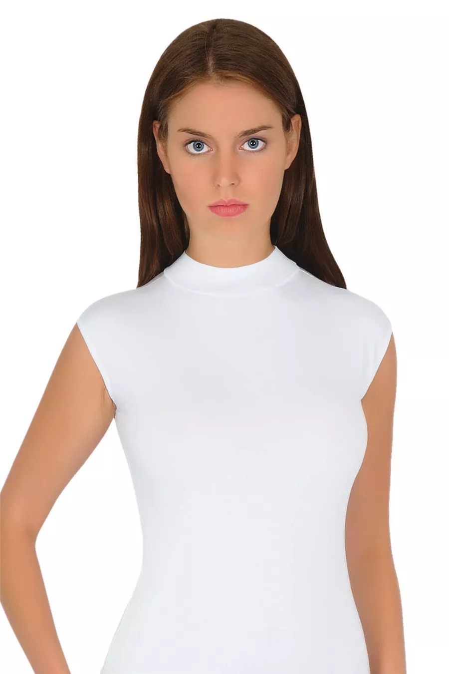 Top donna bianco in lycra senza maniche con collo alto