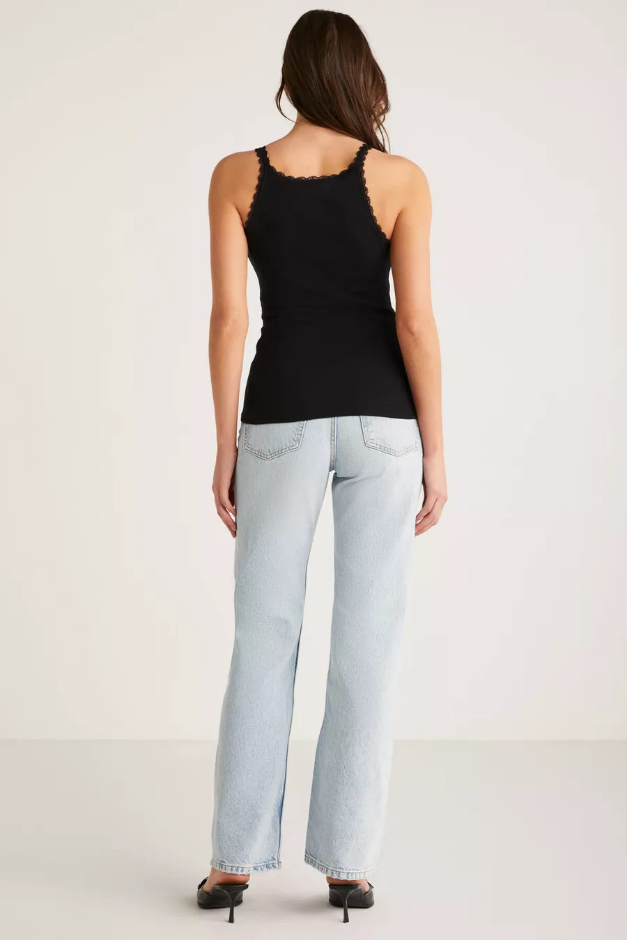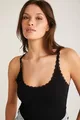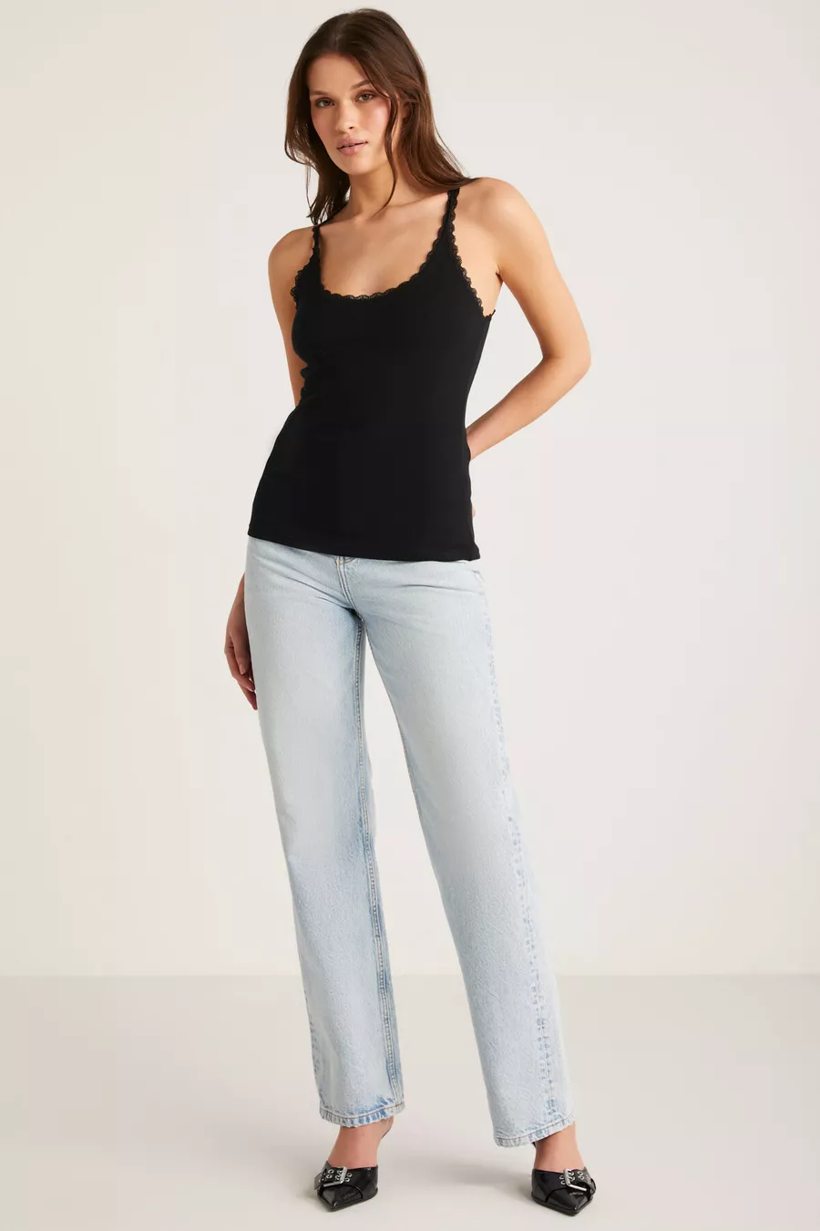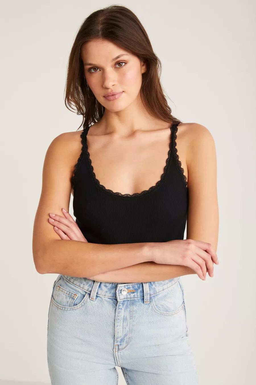 Top donna Barry a taglio normale in cotone con pizzo, spalline sottili e scollo rotondo, colore nero