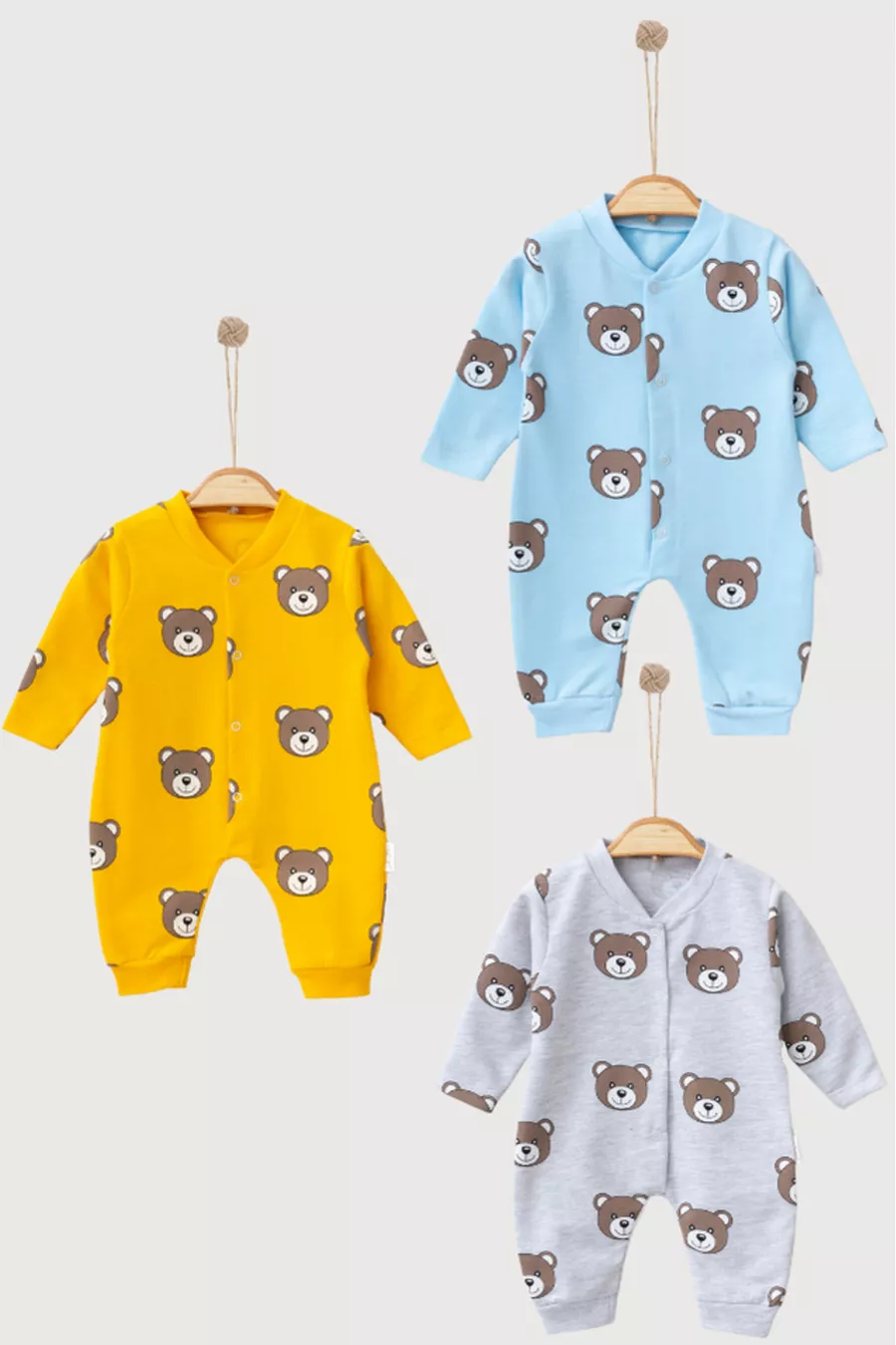 Tuta con orsetto a fantasia 3 pezzi % cotone