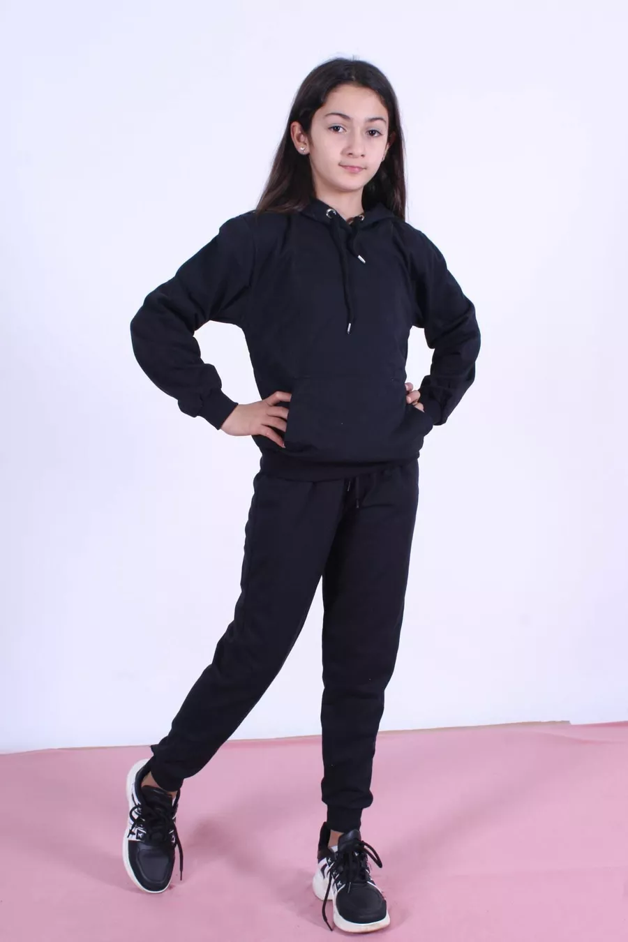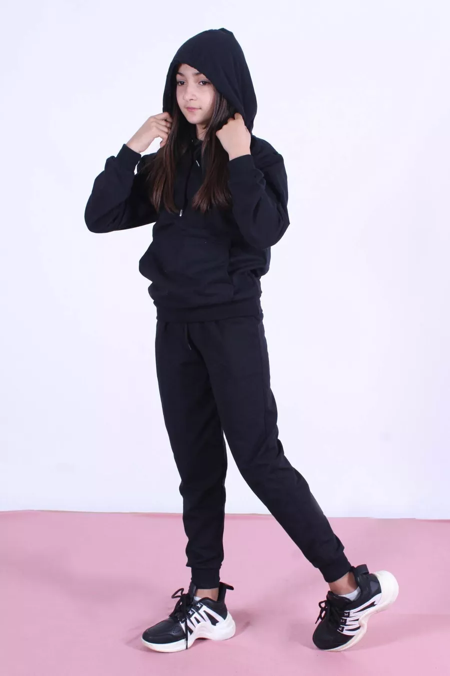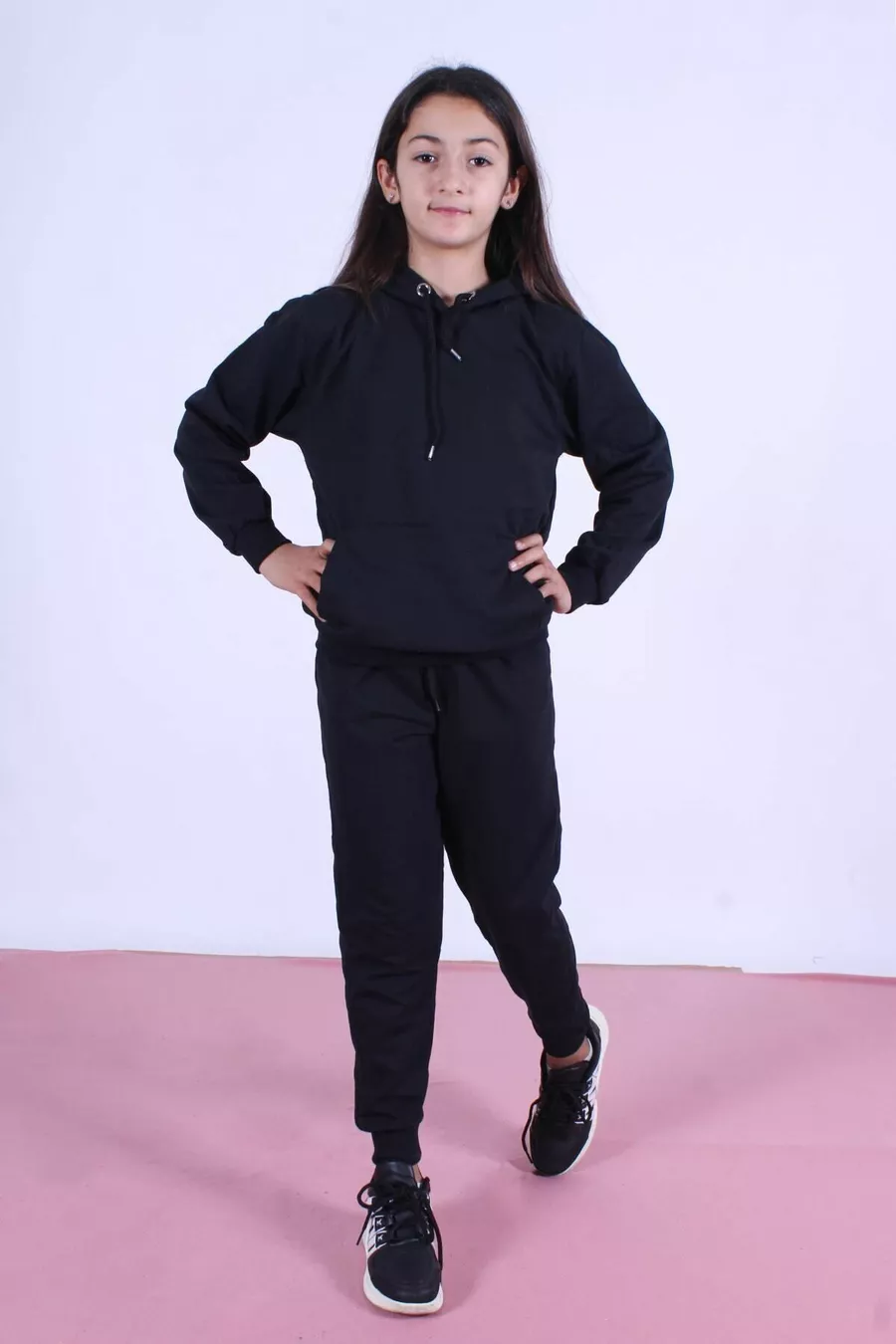 Tuta da ragazza con tasca a marsupio e cappuccio, semplice
