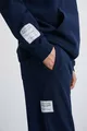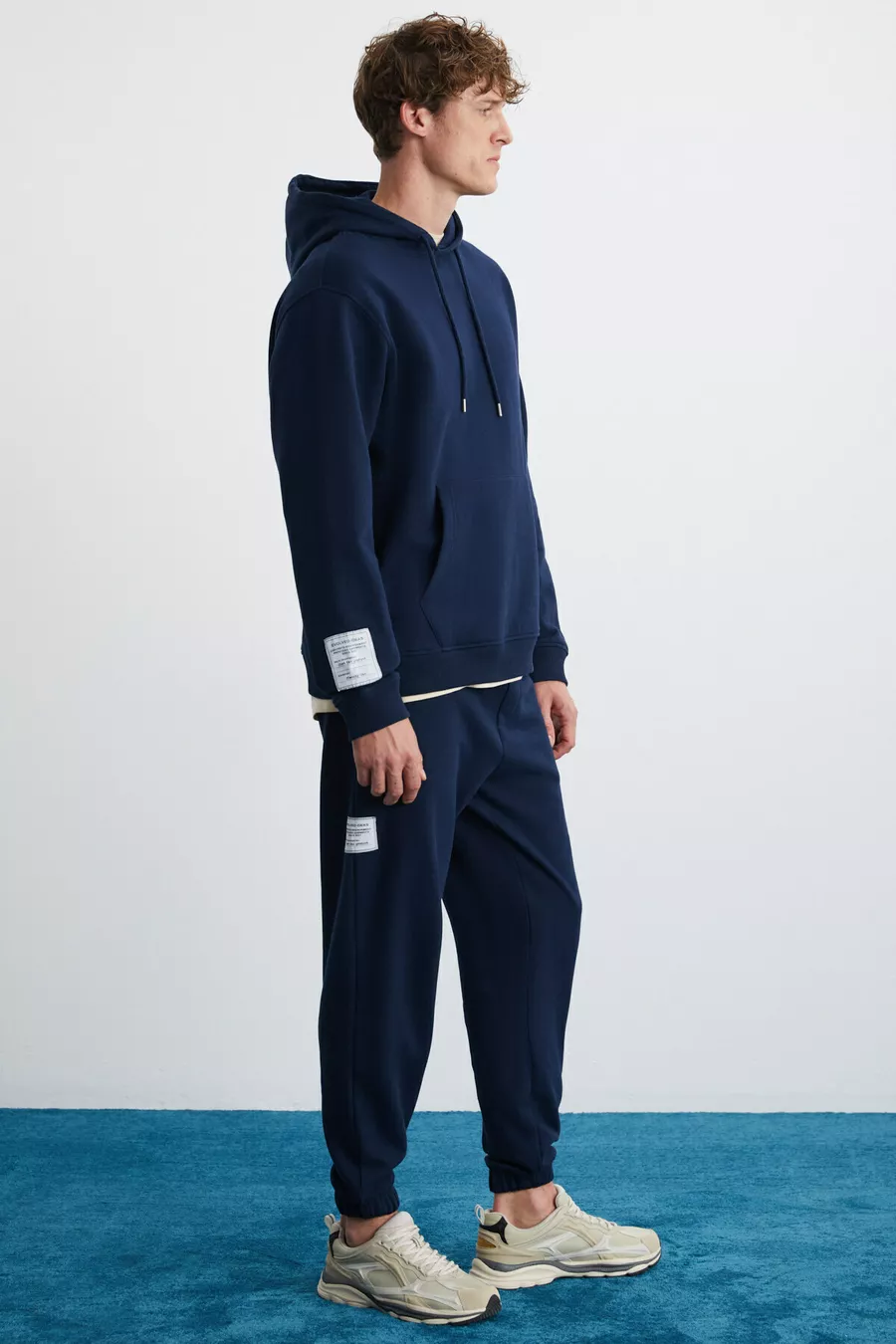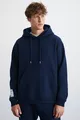 Tuta da uomo oversize Ashbourne con tasca a marsupio, dettaglio etichetta sulla manica, in cotone organico, colore blu navy
