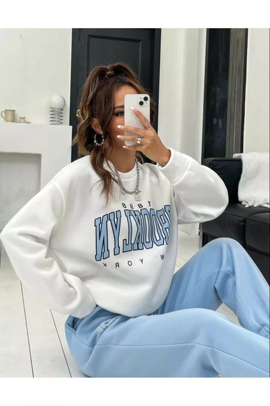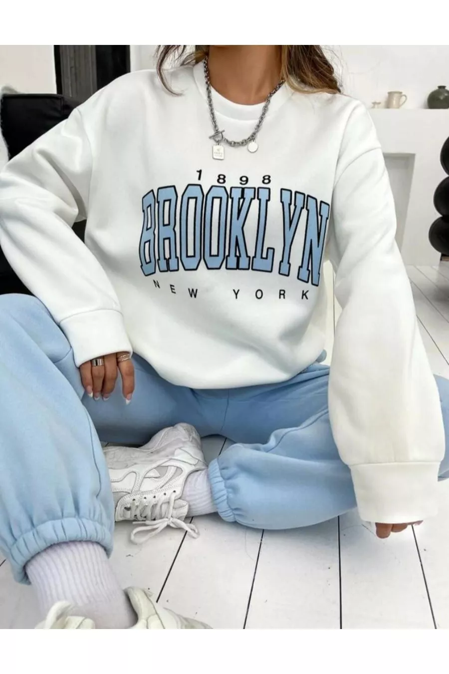 Tuta da donna oversize con girocollo a stampa Brooklyn New York