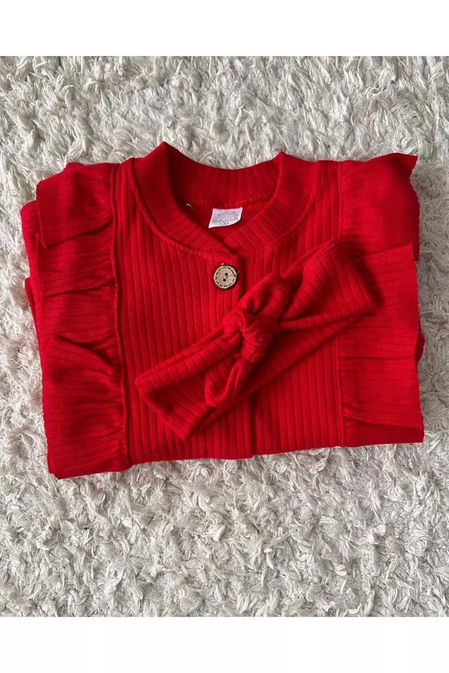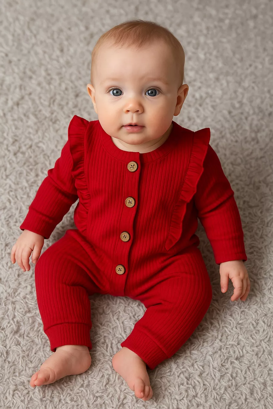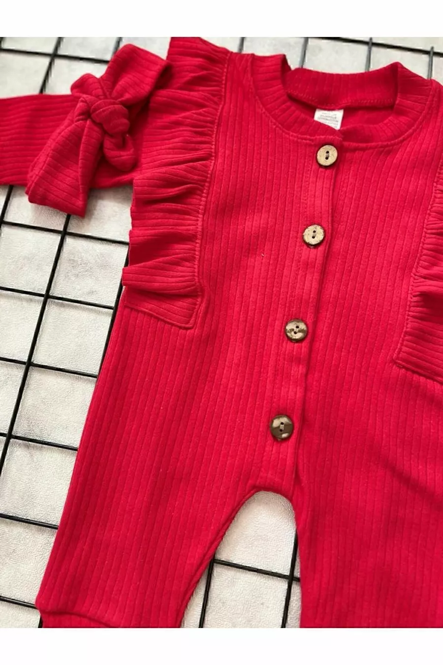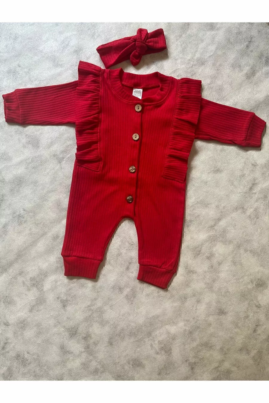 Tuta per neonati stagionale in cotone rosso con volant - con bandana, per 0-3/6/9 mesi