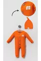 Tutina elegante per bambini unisex con bottoni in legno e cappello decorativo - arancione
