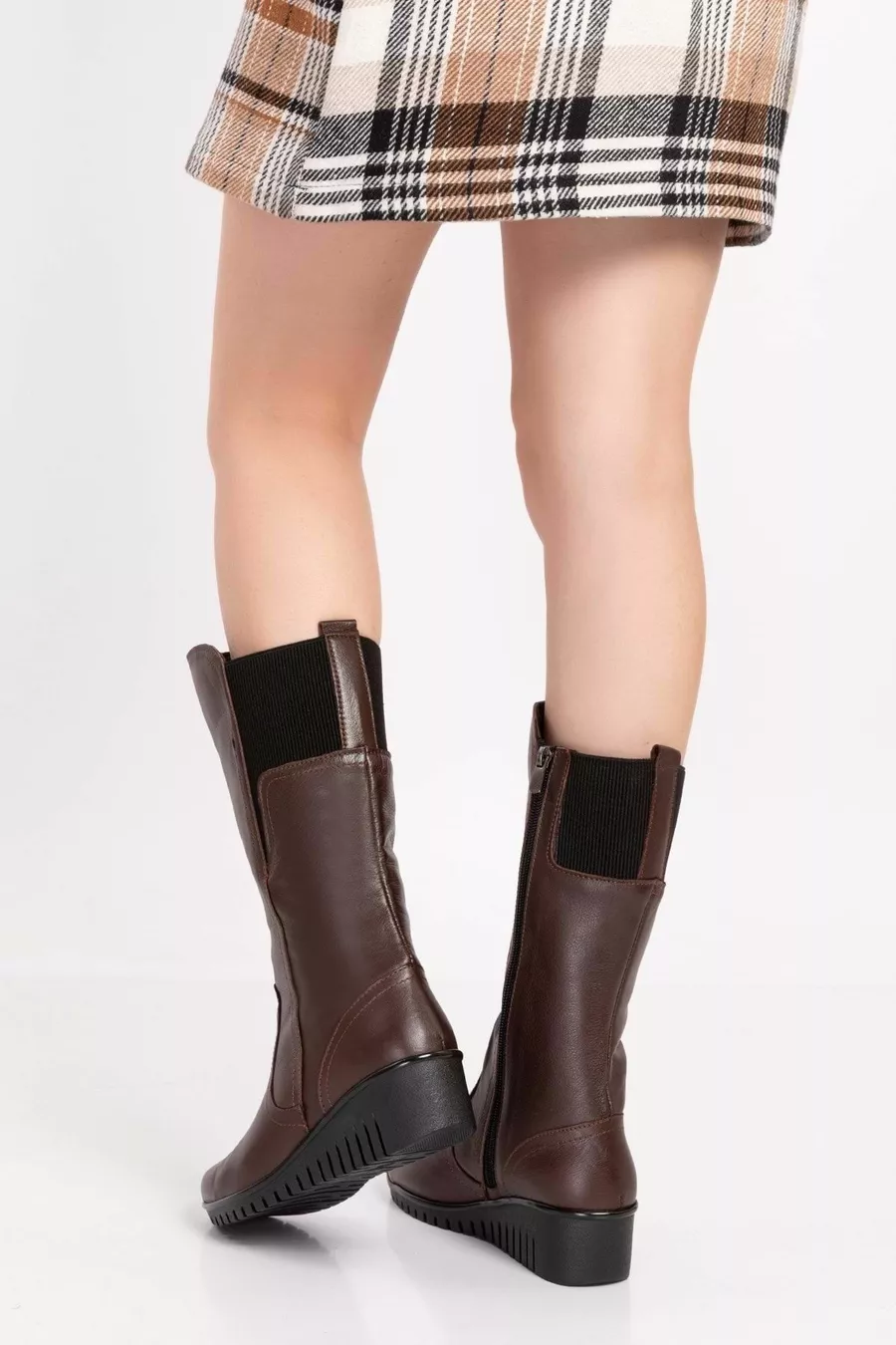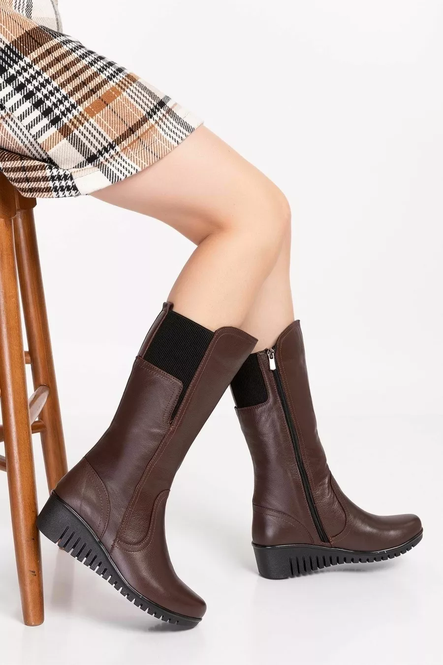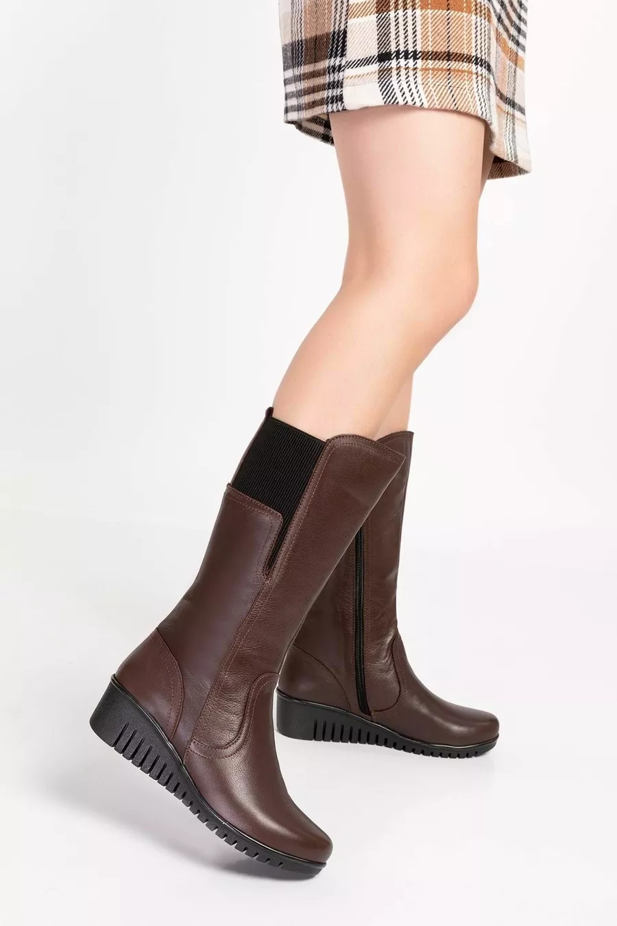 Vera Pelle Calda Fodera Interna Imbottitura Suola Stivali Elastici Gndl. -