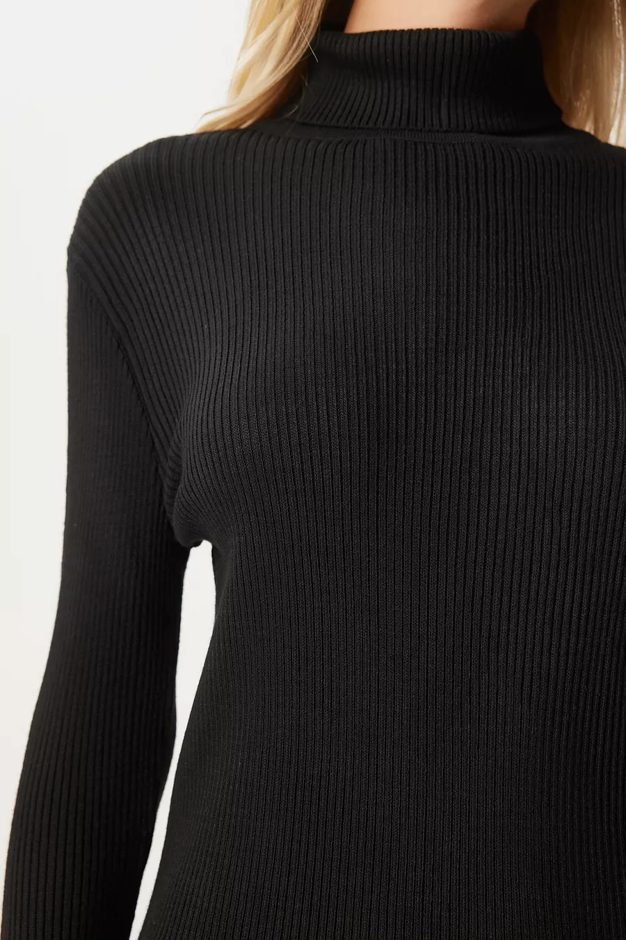 Vestito a Maglia Donna Collo a Dolcevita Nero