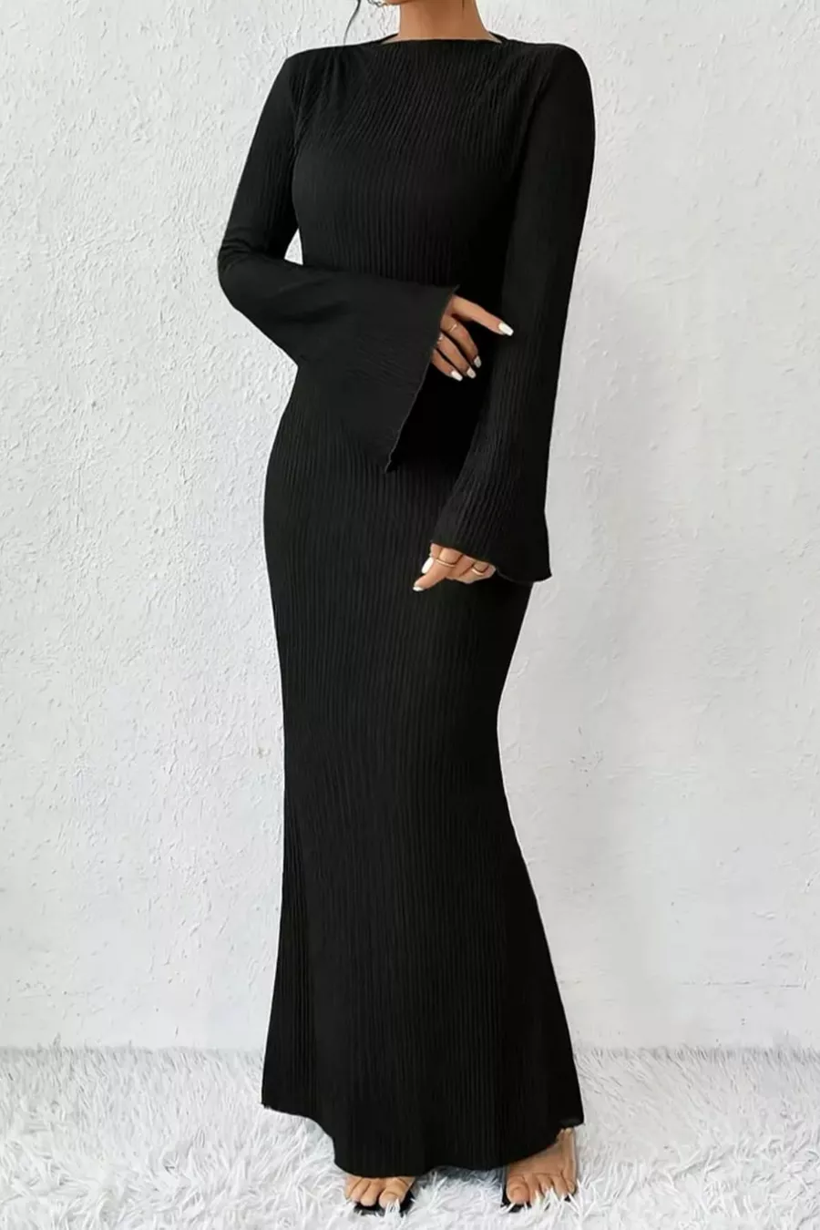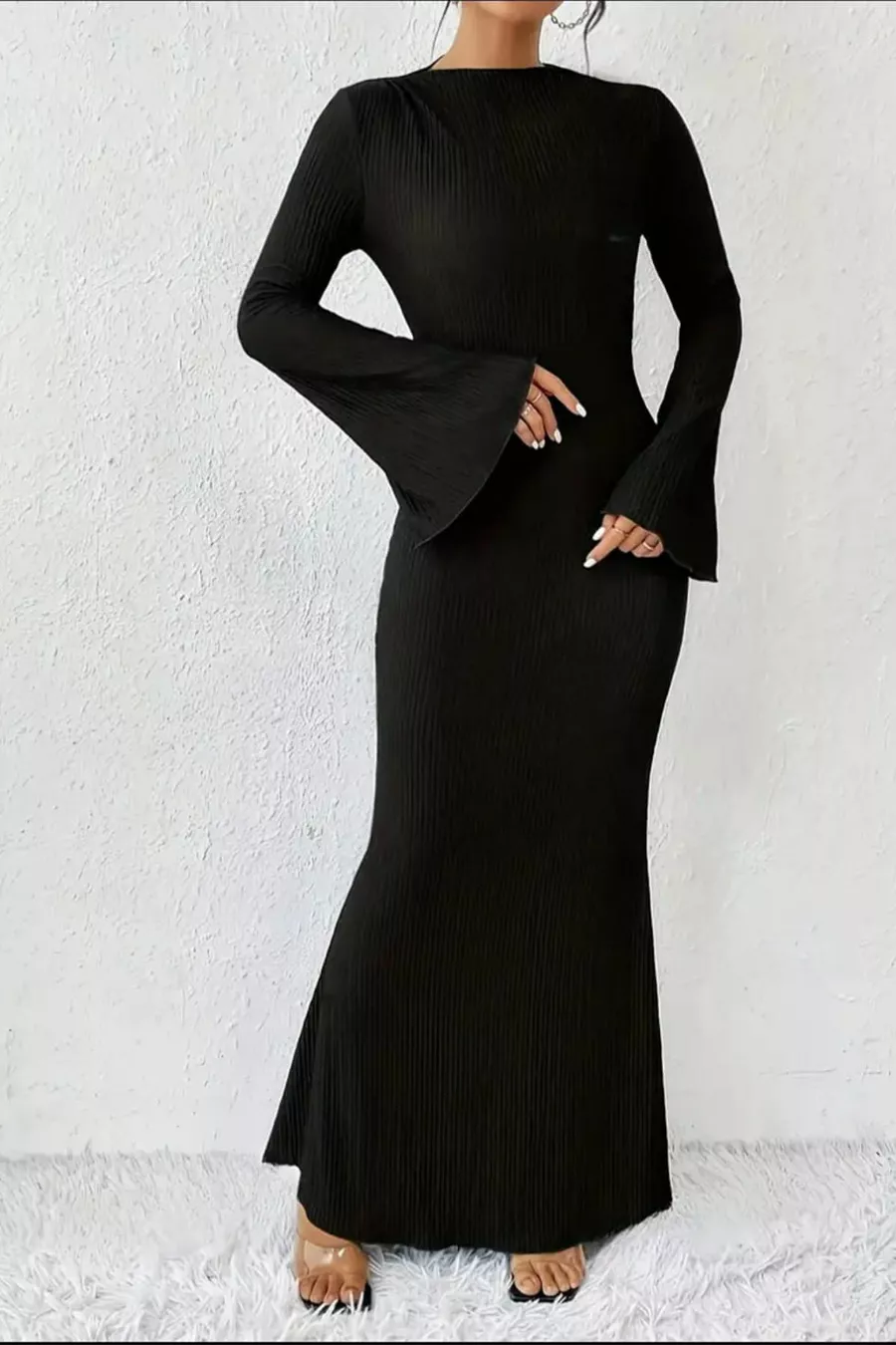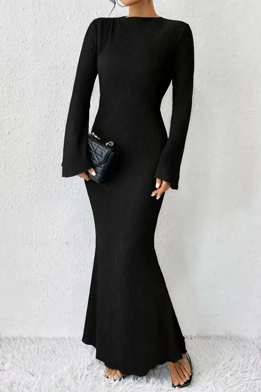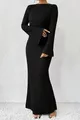Vestito donna a manica lunga con scollatura a girocollo e cuciture apparenti in maglina