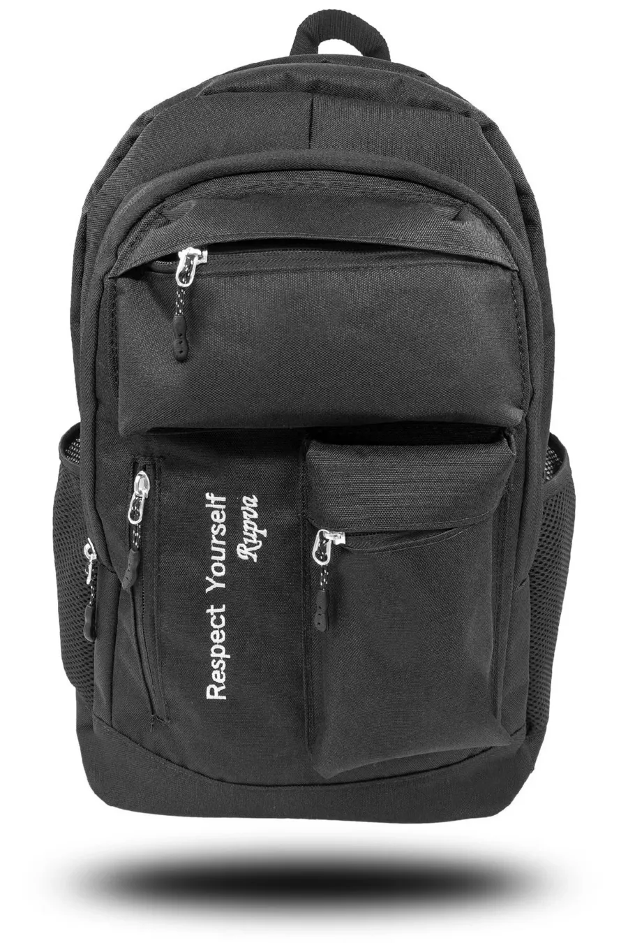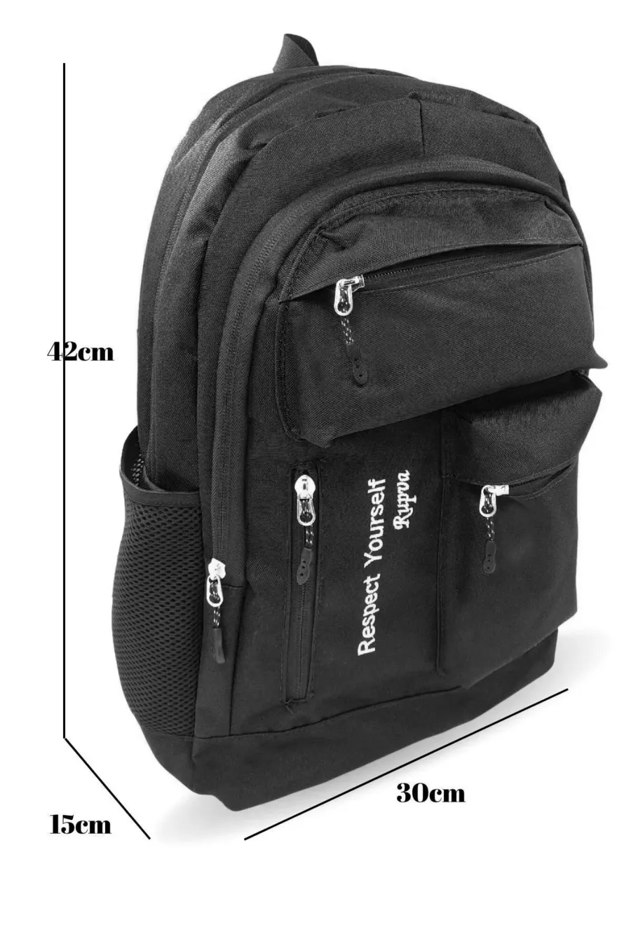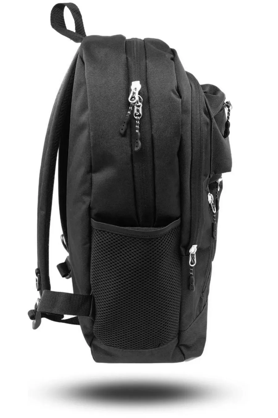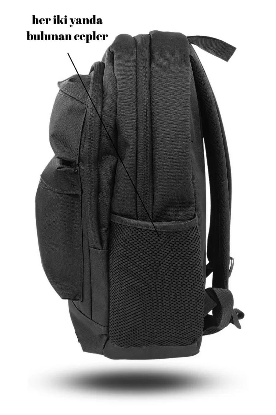 Zaino da scuola unisex per ragazzi e ragazze, quotidiano, con tasche laterali e molte tasche, colore nero