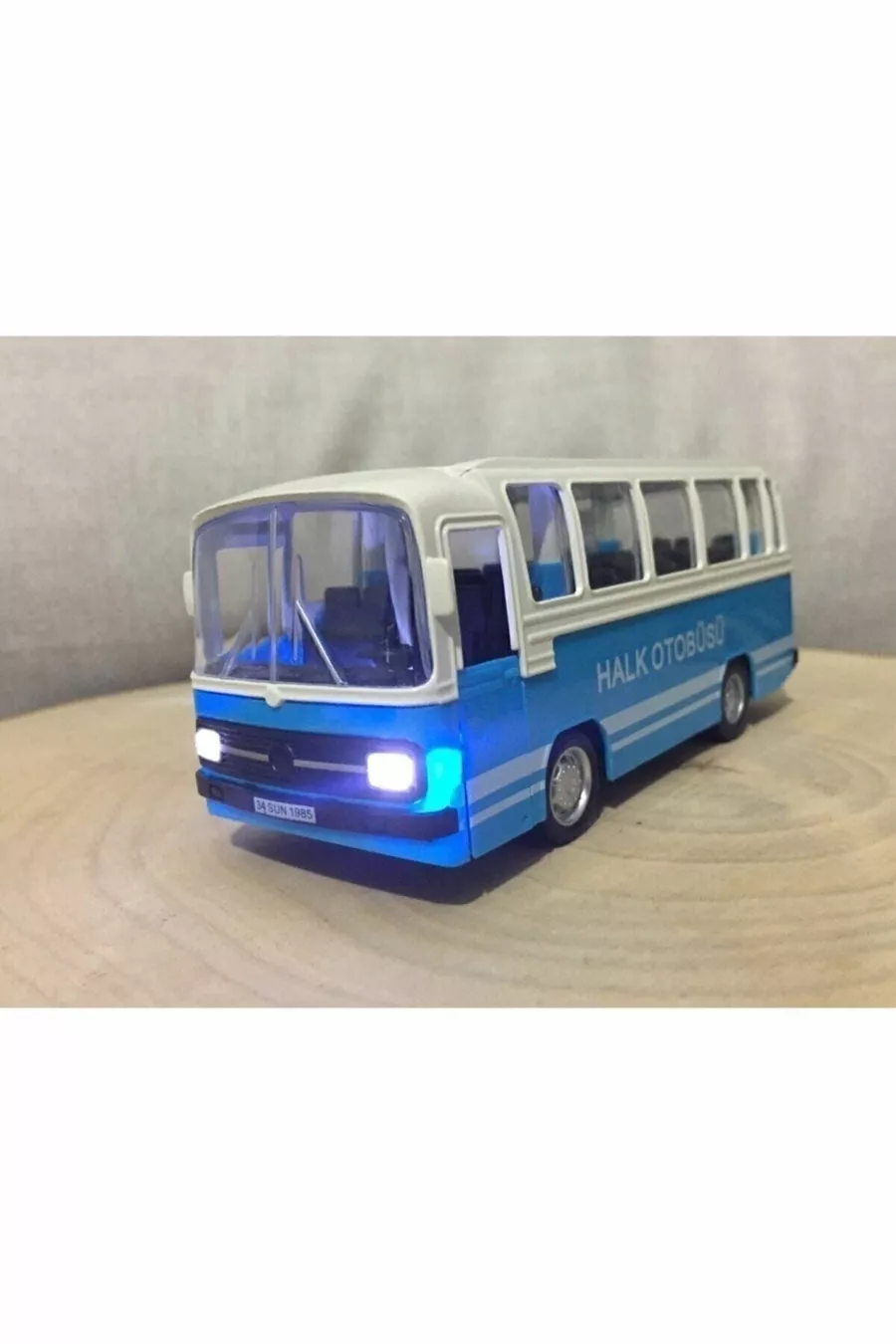 1/ Schaal Nostalgische Stadsbus met Geluid en Licht (blauw)