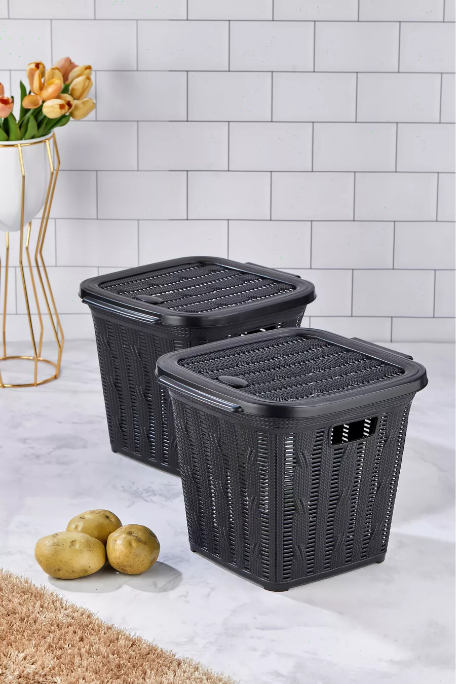 2-delige Multifunctionele Mand - Organizer - Aardappel- en Uienmand - Speelgoeddoos - Badkamermand