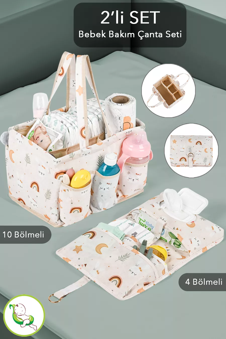 2-delige set multifunctionele luiertas met vakken + organizer voor luiers en natte doekjes
