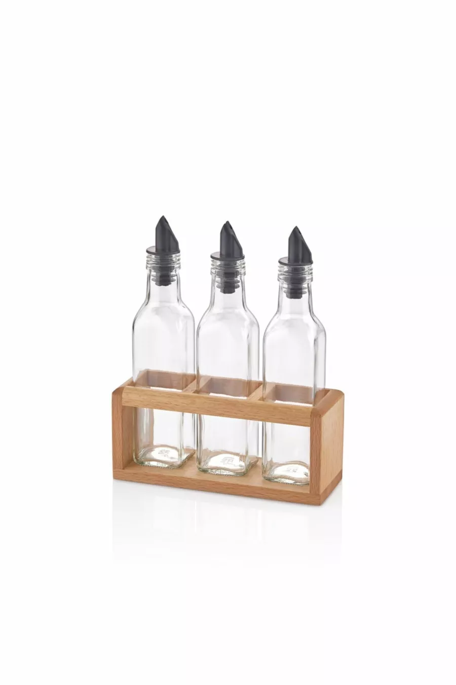 3-delige olie- en azijnset, olieset met houten standaard ML