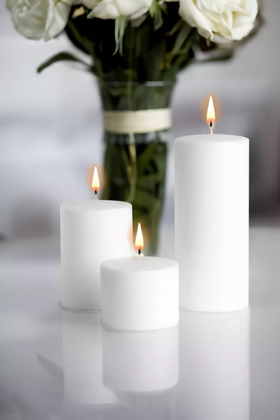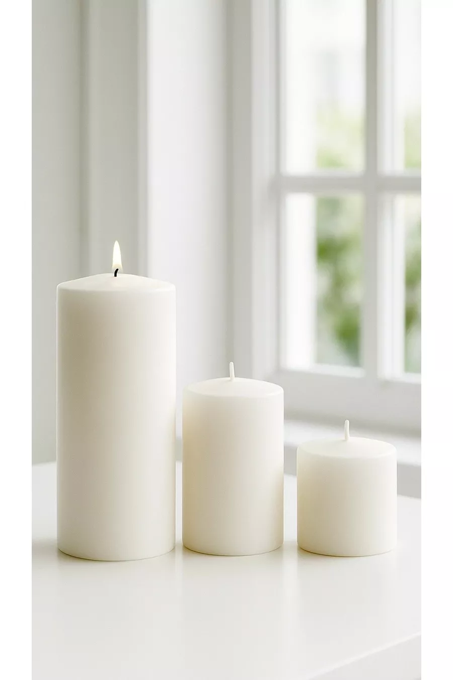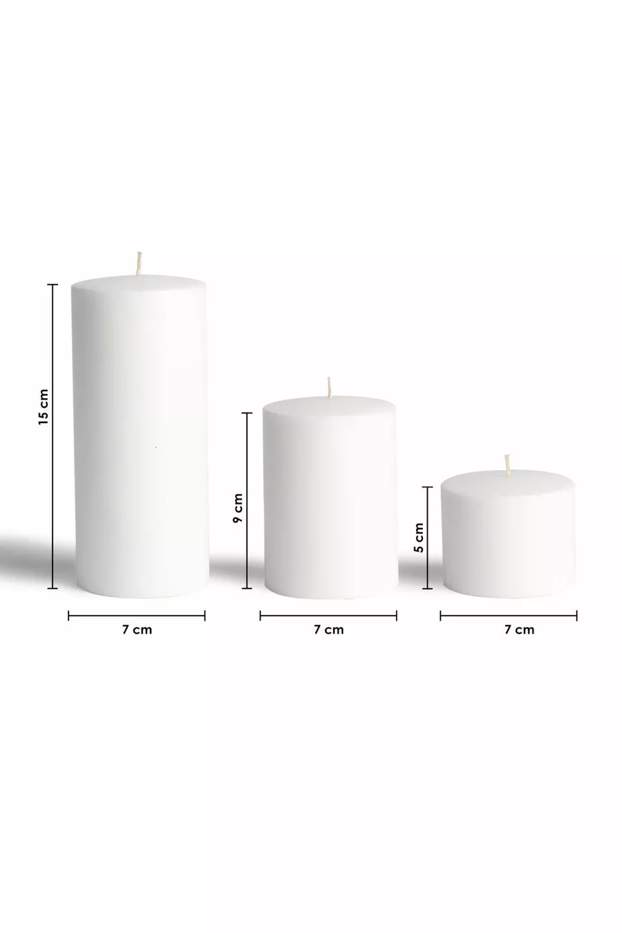 3-delige set witte kaarsen, diameter 7 cm, groot, brandt urenlang