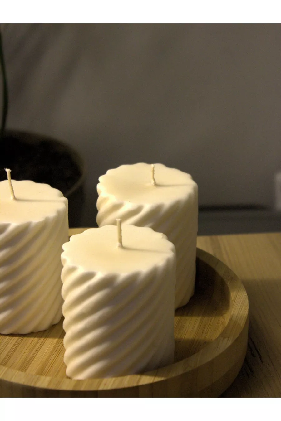 3 Stuks Schroefvormige Cilinderkaars Creme Poedergeur Kaars Sojawas Vegan Kaars