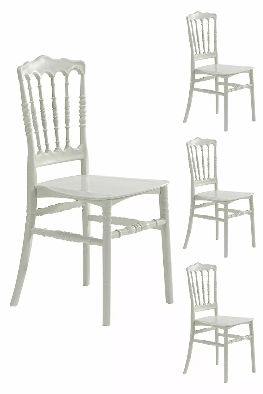Materiaal: Plastic Kleur: Wit Stoelbekleding: Geen stof Model: Stoel Garantieperiode: 2 Jaar Aantal stoelen: 4 Thema / Stijl: Modern Kenmerk: Wasbaar